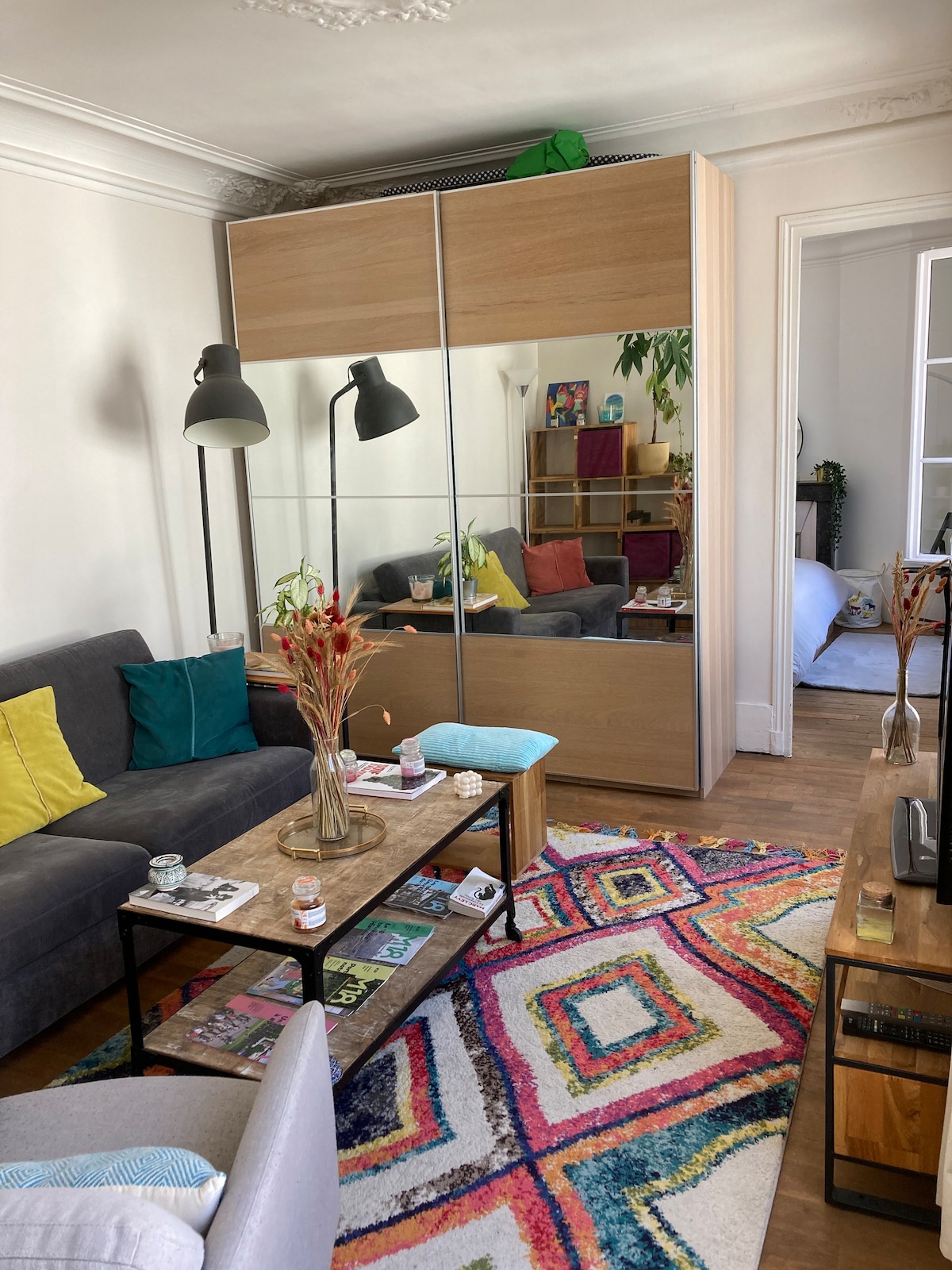 Authentic parisian style apartment (50 m2), located 15 min walking from Montmartre, perfect to welcome 4 persons. 1 bedroom, 1 living room with a confortable sofa bed, a fully equipped kitchen and modern italian style bathroom (with shampoo, shower gel, hairdryer, ...). Bed sheets and towels will be provided. The district popular and alive is full of bars, restaurants, bakery, artisanal food stores .. I would be really happy to give you tips and my favorite adresses to enjoy at best Paris !