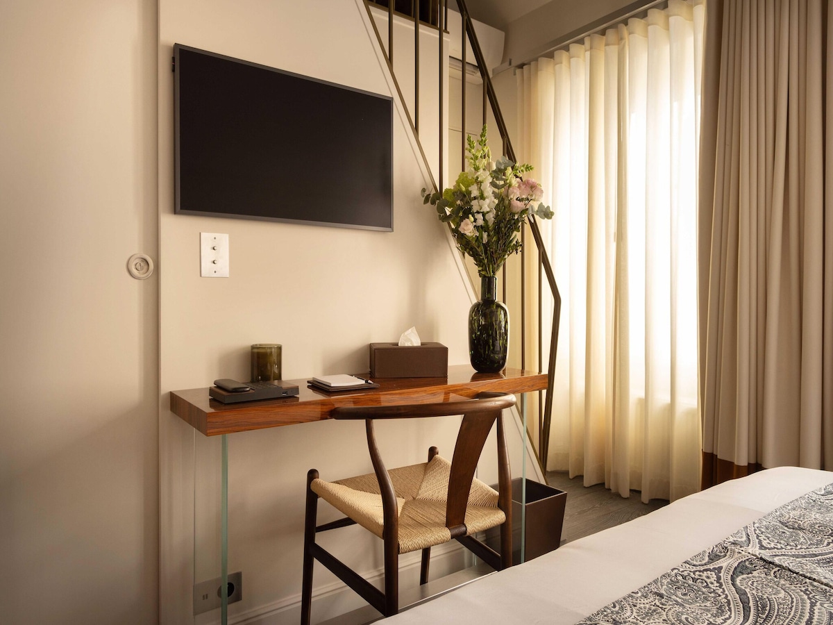 Esta habitación cuenta con una cama tamaño queen, baño privado, escritorio y sillón en un diseño compacto pero cómodo. Perfecto para viajeros que disfrutan de la simplicidad con funcionalidad. Los huéspedes de Airbnb tienen acceso a la piscina de la azotea y a varios servicios del hotel. El hotel cobrará un impuesto municipal de 8,45 euros por noche y persona.
