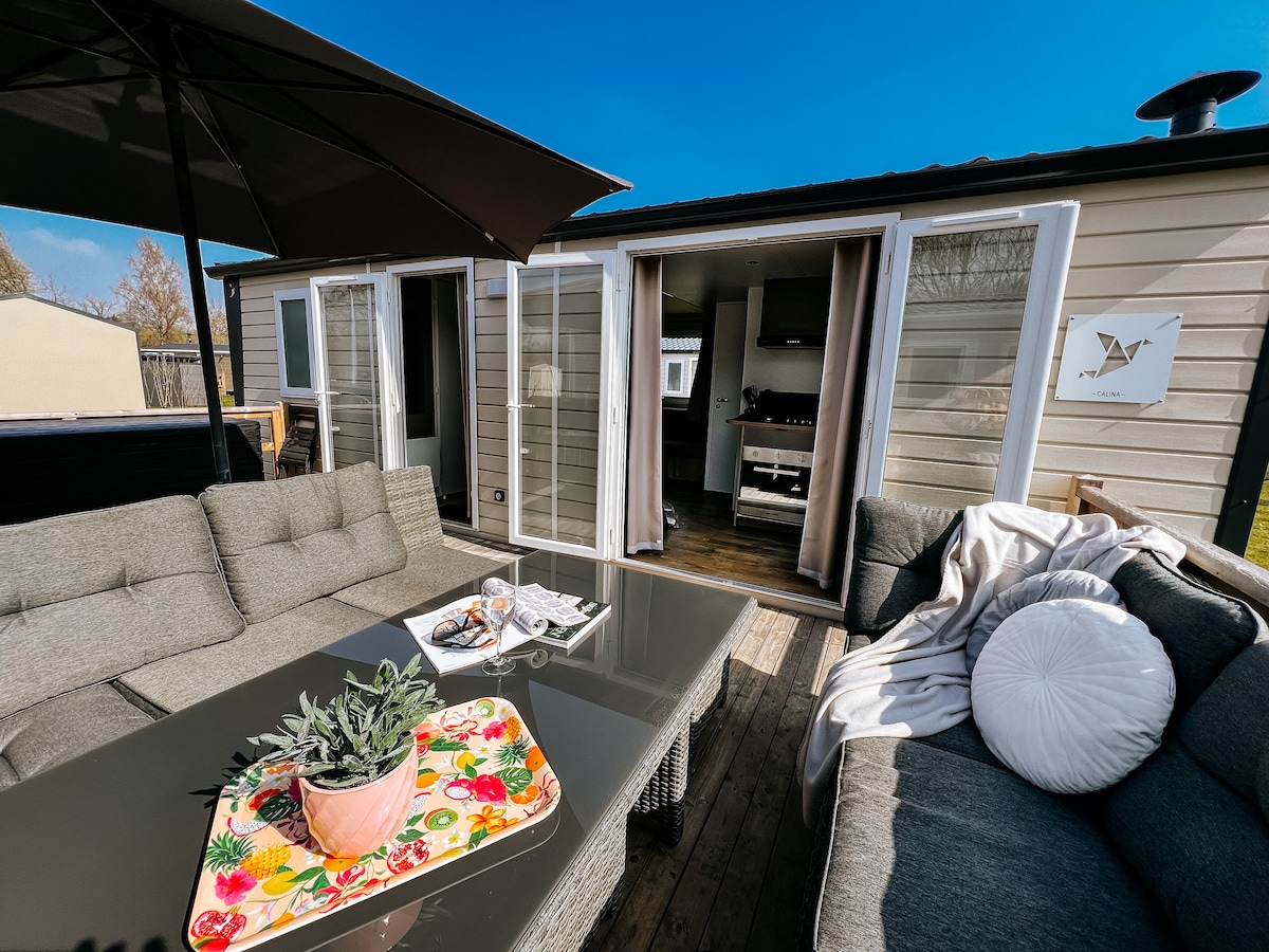 Relájate en este bungalow amueblado en un parque vacacional bien cuidado. El bungalow está equipado con todas las comodidades: cómodos somieres, internet rápido y confiable, dos televisores inteligentes, un amplio jardín vallado, una hermosa estufa de leña y una cocina totalmente equipada con freidora de aire. ¿Necesitas lavarte inesperadamente durante tu estadía? Hay una lavadora y una secadora. La casa es gratuita y es para no fumadores y sin mascotas. Las camas están hechas cuando llegues.