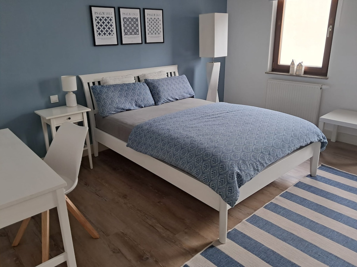 Estimados huéspedes: Bienvenidos a nuestro tranquilo apartamento de vacaciones en Aalen-Wasseralfingen. Tiene a su disposición un apartamento de 2 habitaciones con 70 m², sala de estar, comedor, dormitorio, cocina, baño, entrada privada a través de una hermosa terraza soleada, una plaza de aparcamiento bajo petición. Podemos acomodar hasta 4 huéspedes.
