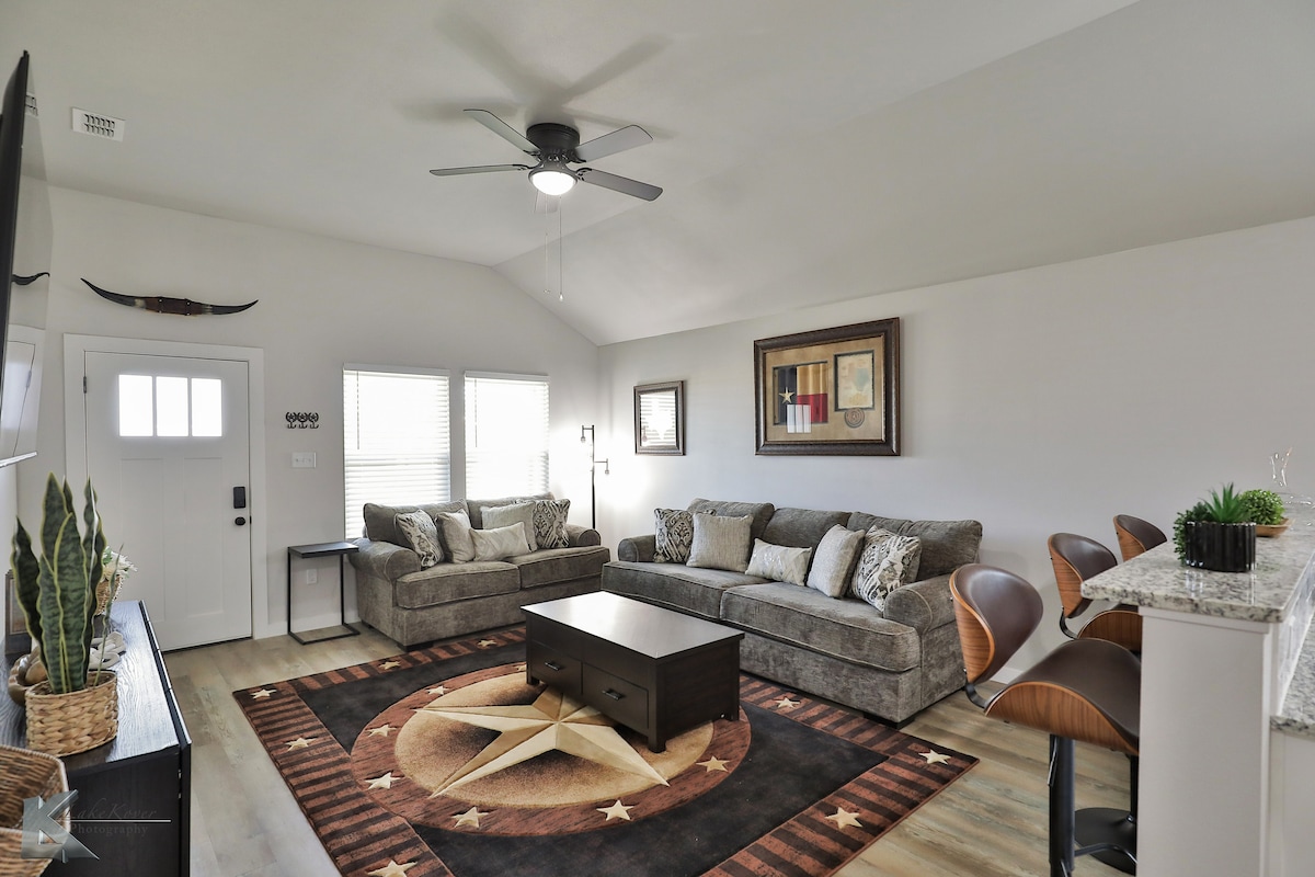 Construida en 1945, nuestra casa es una casa de estilo artesanal ubicada en el barrio Old Elmwood de Abilene. Nuestra casa está totalmente amueblada con un estilo cómodo para que te sientas como en casa. Nuestra casa está a 5 minutos de la Universidad McMurry y a 10-15 minutos en coche de ACU y la Universidad Hardin-Simmons. Acceso para huéspedes Los huéspedes pueden usar toda la casa, incluidos los dormitorios, la cocina, la sala de estar, el comedor, la lavadora/secadora y el patio trasero. Llegada autónoma con cerradura inteligente.