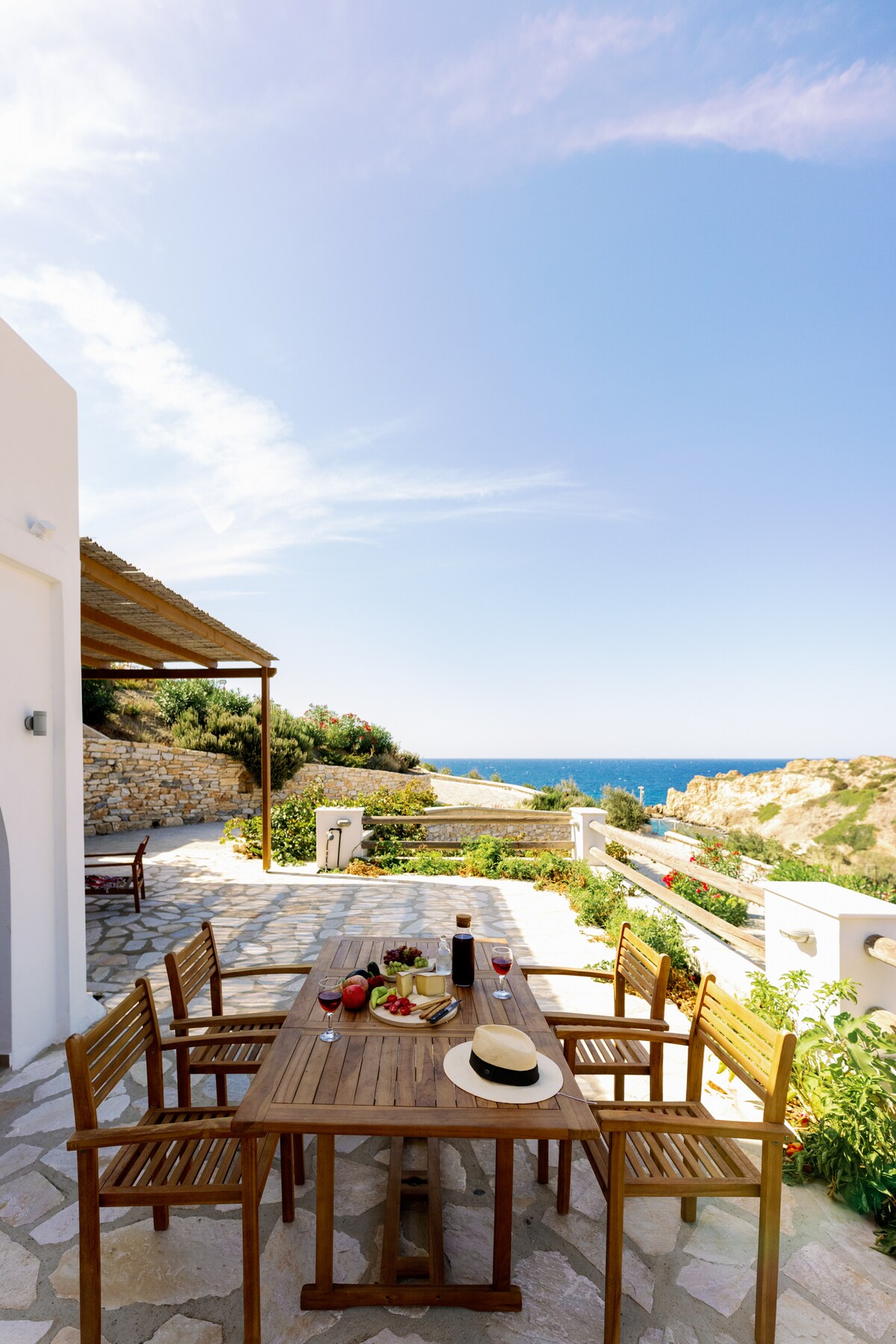 Villa Arismari se encuentra en una ladera serena, rodeada de rocas naturales, con vistas a la hermosa costa de Orkos. Tenemos una impresionante vista panorámica al mar Egeo y a nuestra isla vecina de Paros. Estamos situados entre la playa principal y las bahías más pequeñas de Orkos. Mientras disfrutas de las vistas que ofrece Villa Arismari, prepárate para hacerte unos selfies increíbles. Villa Arismari es una villa de diseño minimalista cicládico.