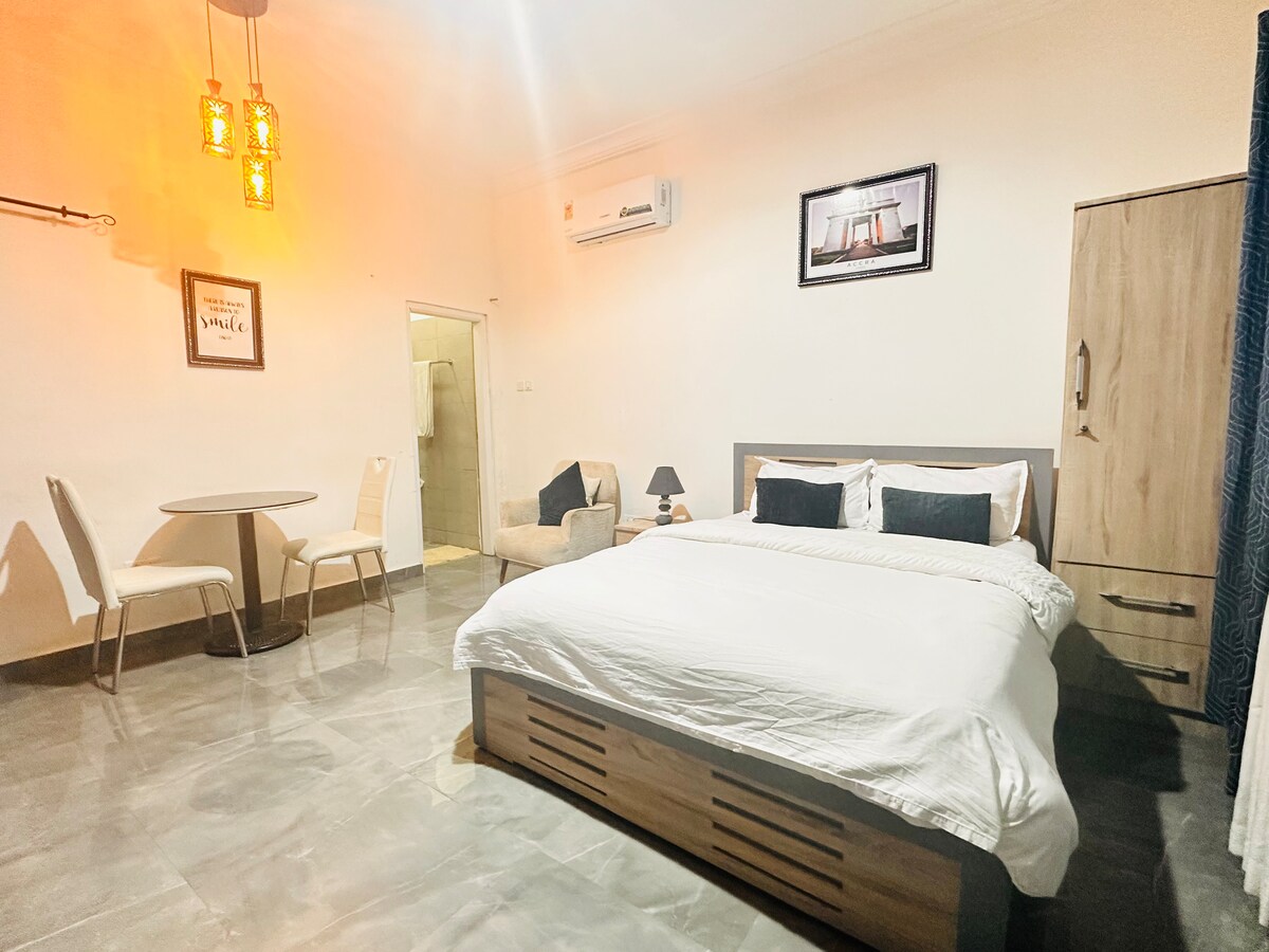 Bienvenido a nuestro hermoso apartamento tipo estudio, ubicado en el corazón de East Legon, uno de los barrios más vibrantes y exclusivos de Accra. Tanto si estás en la ciudad por negocios como por placer, este acogedor y elegante espacio ofrece todo lo que necesitas para disfrutar de una estancia cómoda e inolvidable. Relájate y desconecta en tu propio balcón privado, que ofrece un espacio tranquilo para disfrutar del aire fresco y de los alrededores.