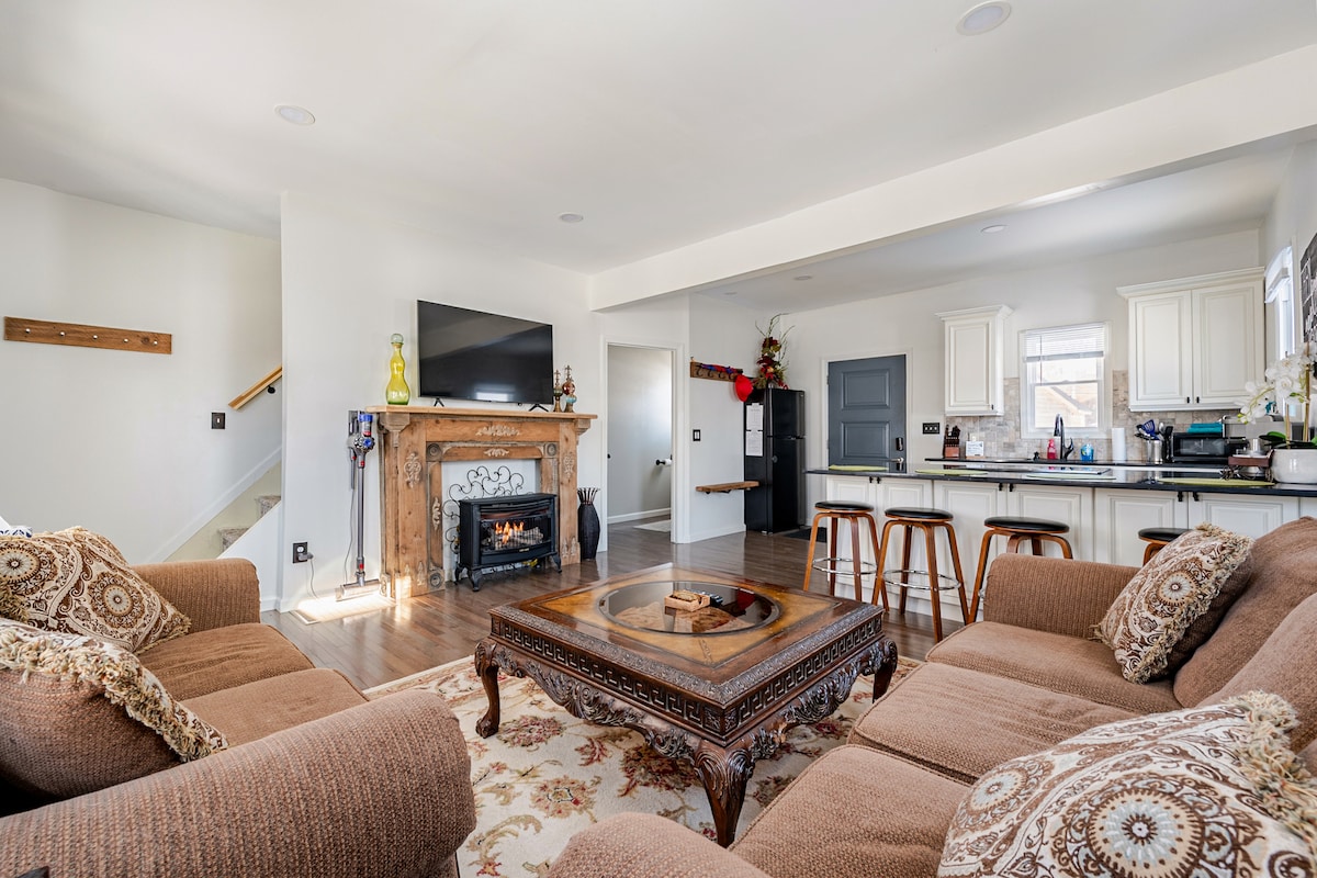 Welcome to your serene escape in Hagaman— A beautifully renovated 2-bedroom, 1.5-bath townhouse just 18 miles from Saratoga and 9 miles from Sacandaga Lake. This peaceful retreat blends modern farmhouse charm with everyday convenience, making it perfect for families, couples, or solo travelers. King Master Bed with AC Full Bed with AC SMART TV and gas fireplace Full Kitchen Great Village location next to the award-winning Stewarts Shop, known for their New York milk & Ice Cream. No parties.