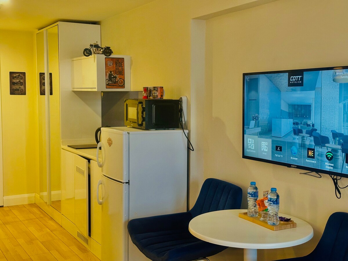 Boho-style studio in the historical center of Batumi — Porta Batumi Tower - Panoramic windows with a breathtaking view of the sea, mountains, and city - Bathtub! - Perfect cleanliness and freshness! - Excellent soundproofing! - Warm floors! - Many elevators that work without delays Nearby: - The Sea, Old Town, Europe Square, boulevard, restaurants and cafes are just 5 minutes away - Supermarkets, pharmacies, casino, hookah bars and bars are nearby - Convenient parking near the house