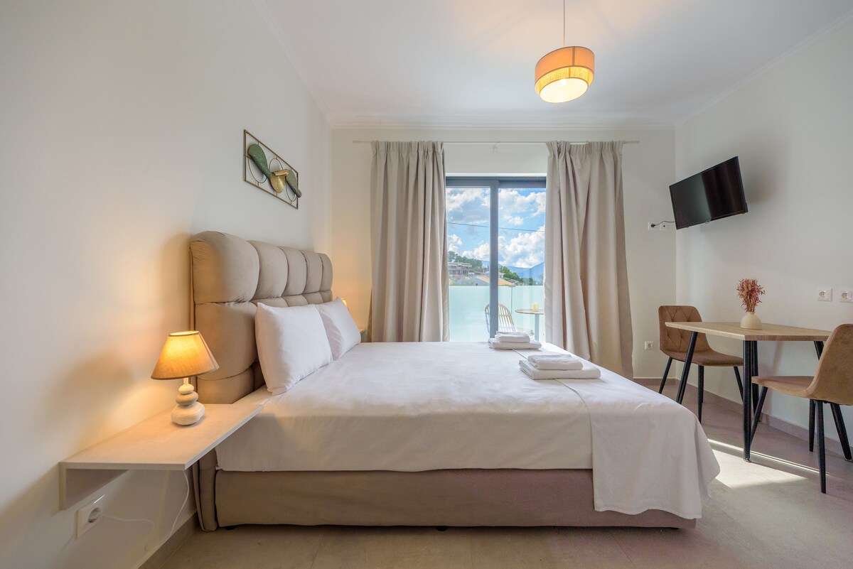 Guests enjoy a private terrace and free WiFi, a lounge, elevator, concierge, and luggage storage. Breakfast and Dining: A locally sourced greek continental breakfast includes local specialties, fresh pastries, cheese, and juice. Activities and Attractions: Mytikas Beach is a 7-minute walk away. Nearby attractions include Fortress of Santa Mavra (27 mi) and Aktion Airport (28 mi). Cycling and diving are available.