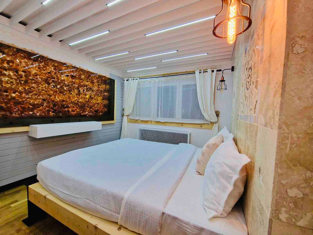 Mímate en nuestro encantador estudio, creado tanto para viajeros de negocios como de placer. Sumérgete en el lujo de nuestro alojamiento bien equipado, que cuenta con un dormitorio espacioso, comodidades modernas y un ambiente sereno. Tanto si estás en la ciudad para una reunión importante como si buscas relajarte y recargar energías, estás en el lugar indicado. Aprovecha nuestra ubicación estratégica, explora lo mejor de la ciudad o simplemente relájate en la comodidad de tu hogar.