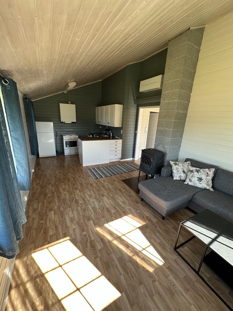 En una colina con vistas al mar se encuentra esta casa de campo única diseñada por un arquitecto. La cabaña en sí consta de cuatro cajas que están conectadas, lo que crea una dinámica emocionante. La proximidad tanto al mar como a las montañas es algo que te da la oportunidad de tener muchas experiencias diferentes juntos. Aquí puedes disfrutar de una de las playas de arena más hermosas de Noruega y de las encantadoras auroras boreales. Nota: hay una colina empinada hasta la cabaña. Si subes, DEBES tener 4x4. Puedes aparcar en el aparcamiento común y caminar hasta la cabaña.