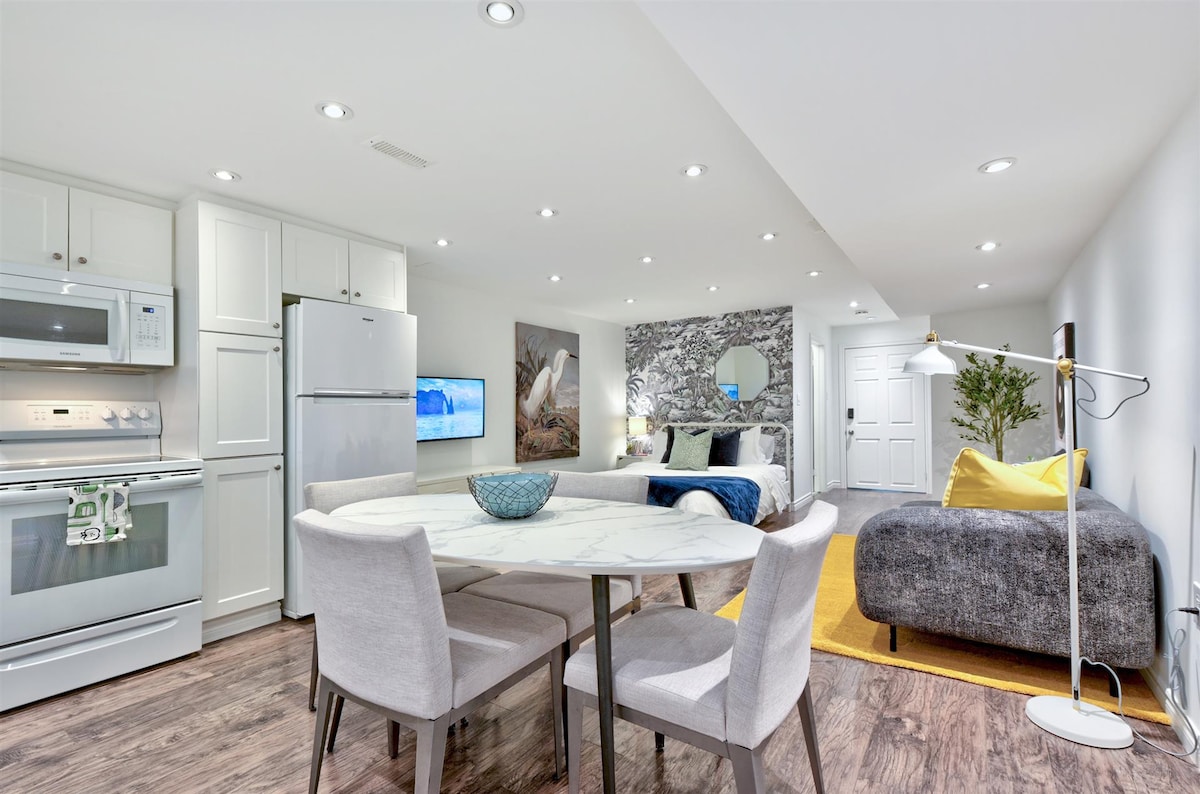 Estudio moderno y luminoso en Upper Beaches Disfruta de este acogedor estudio recién renovado con cocina completa, baño privado y entrada independiente. Luminoso, tranquilo y moderno, es perfecto para uno o dos huéspedes. Incluye lavandería en la unidad, wifi y todos los elementos básicos. Situado en un tranquilo barrio de Upper Beaches, cerca de cafeterías, parques, transporte público y el lago, ¡tu relajante escapada a Toronto te espera!