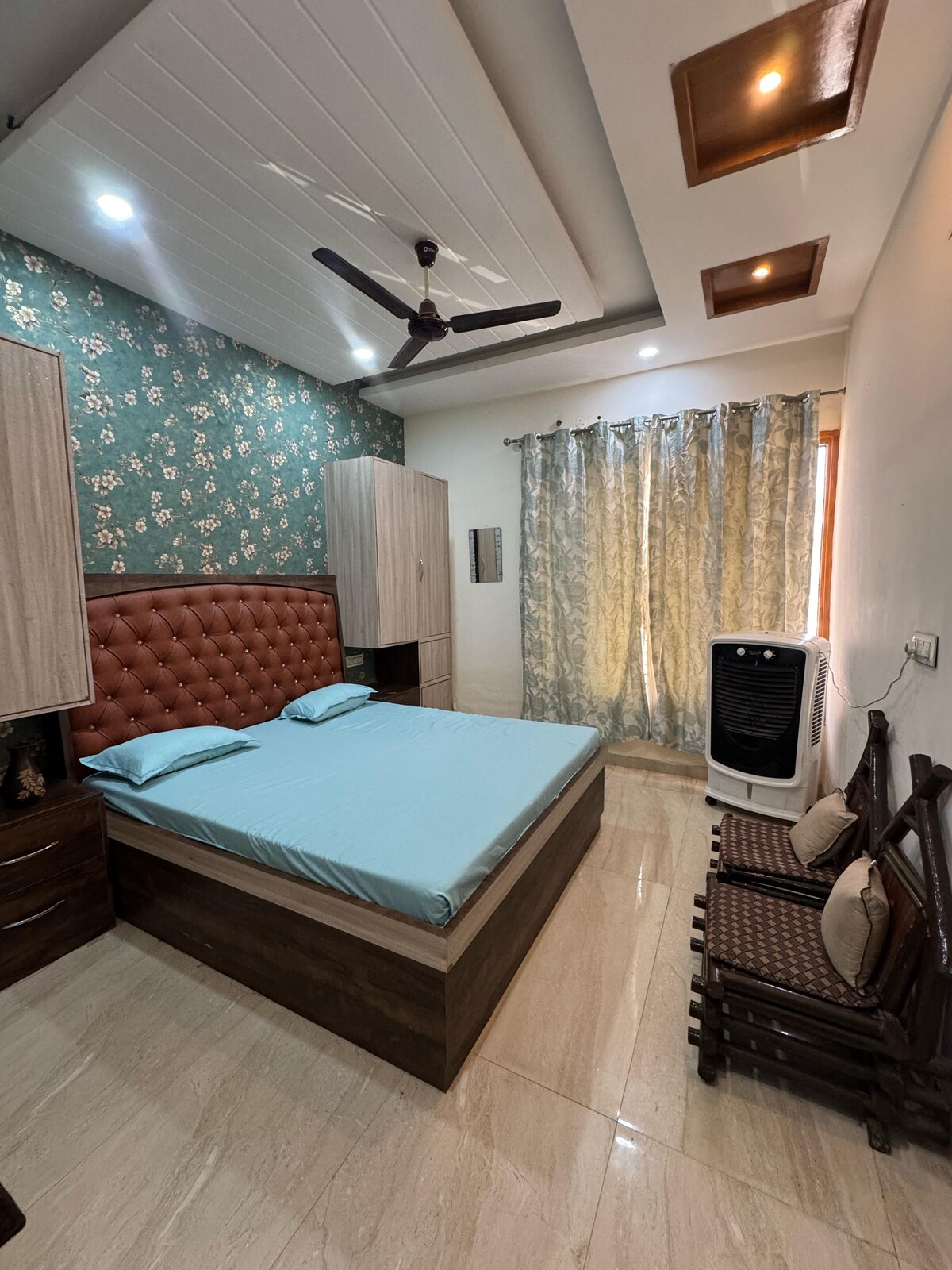Bienvenido a una estancia tranquila y acogedora en un piso bien cuidado con fácil acceso a Chandigarh y Mohali. Ideal para viajeros solitarios, parejas o familias pequeñas. La habitación incluye una cama doble, un armario, baño privado adjunto, una cocina privada y aire acondicionado para una estancia cómoda. Sal a tu balcón privado para disfrutar de las vistas verdes y de la autopista con mucha luz natural. El edificio tiene acceso a ascensores y estacionamiento, y está conectado a mercados, transporte, cafés y lugares de interés en Chandigarh y Mohali.