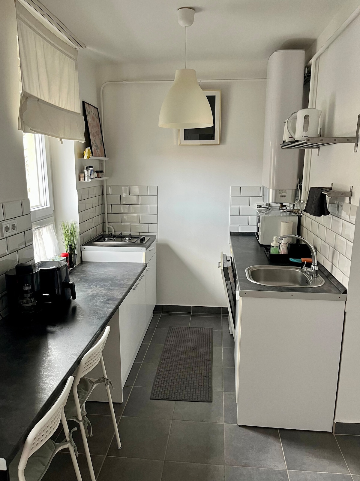 Tu nuevo y elegante apartamento ofrece una estancia cómoda para un máximo de 2 personas. Se encuentra en una nueva urbanización a pocos minutos del centro de la ciudad. El alojamiento está totalmente amueblado (electrodomésticos de cocina, wifi, TV inteligente Antik, etc.) y está listo para tu estancia. Hay aparcamiento gratuito en el espacio subterráneo designado. La seguridad de la propiedad y de los huéspedes la proporciona una empresa de seguridad privada.