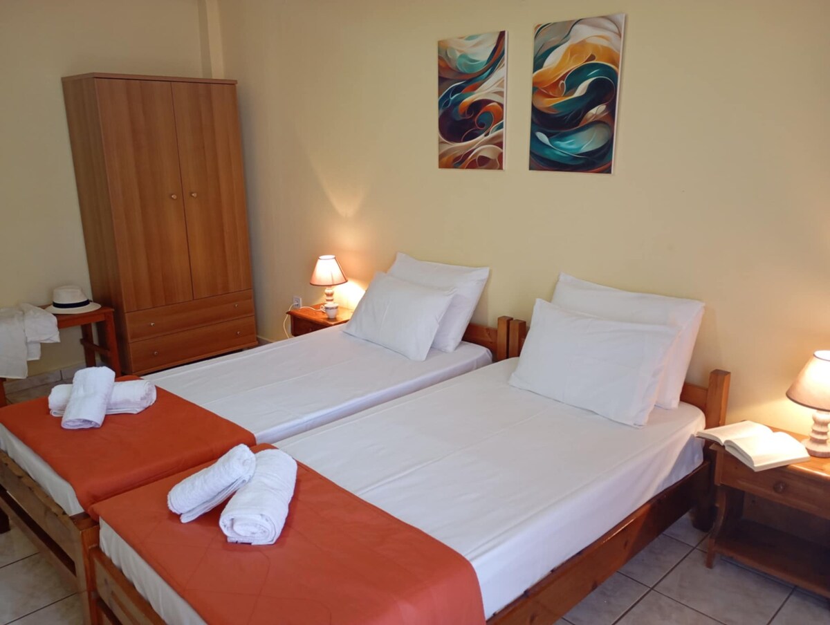 Los apartamentos Myrtia son dos apartamentos hermosos y acogedores, ¡que constituyen una alternativa perfecta para unas vacaciones familiares asequibles! El espacio totalmente equipado está listo para satisfacer tus necesidades de relajación e independencia. Los hamaks en las terrazas se convertirán en tu lugar favorito para una siesta de verano bajo los olivos o para una copa de vino por la noche. Anna y Spiros
