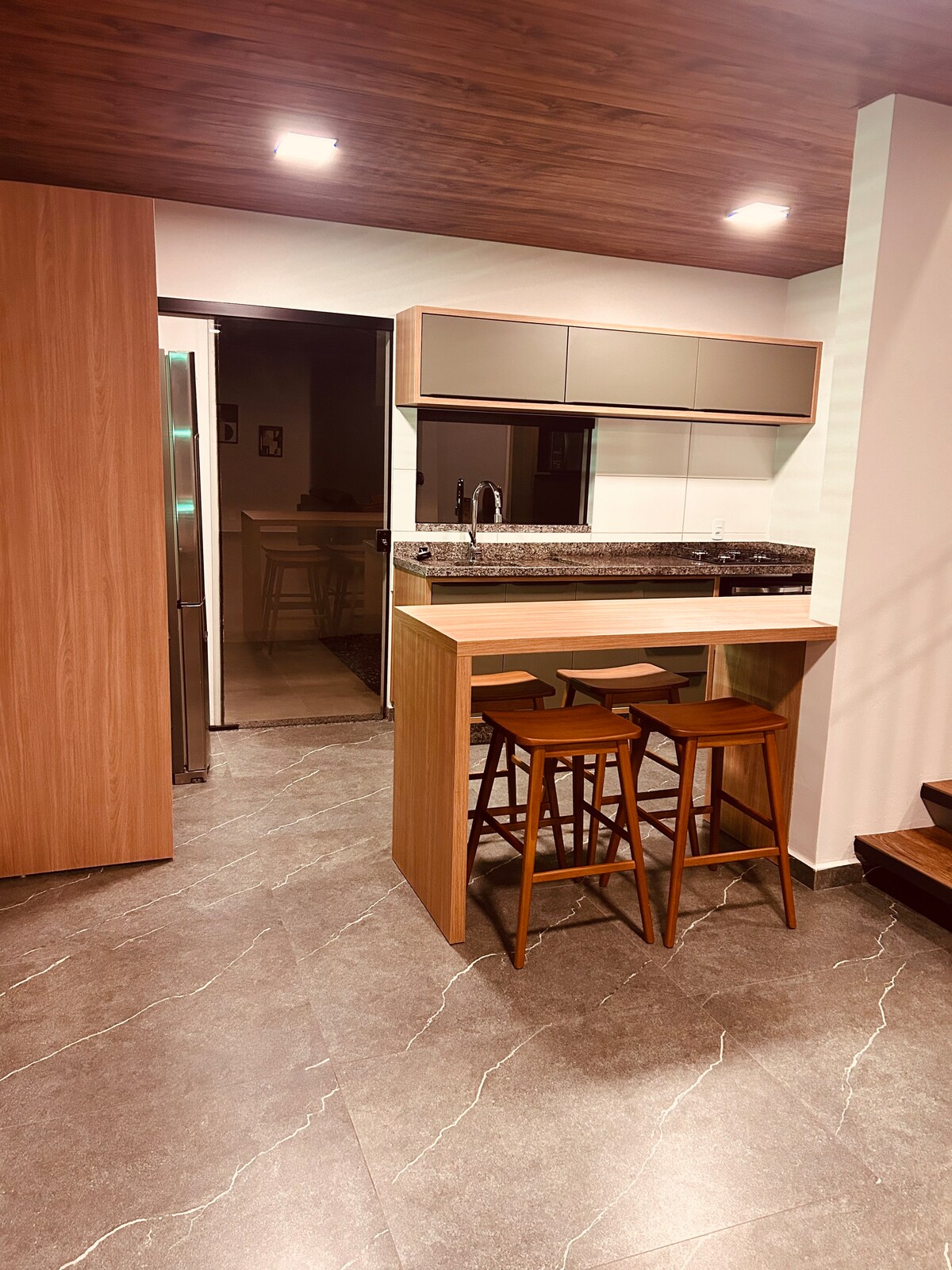 @sitiovoerminio Nuestro chalet es muy agradable y tiene todo el frente de vidrio con una hermosa vista del atardecer Entrepiso con aire acondicionado, que se cierra con cortinas. Tiene una cama doble y una cama individual Sala/cocina con aire acondicionado, dejando todo el chalet climatizado Cubierta con chimenea de pie Jacuzzi interior climatizado Baño con ducha de gas Piscina climatizada. Todo el año calentita para que la disfrute. Cocina completa, estufa de leña y gas con utensilios