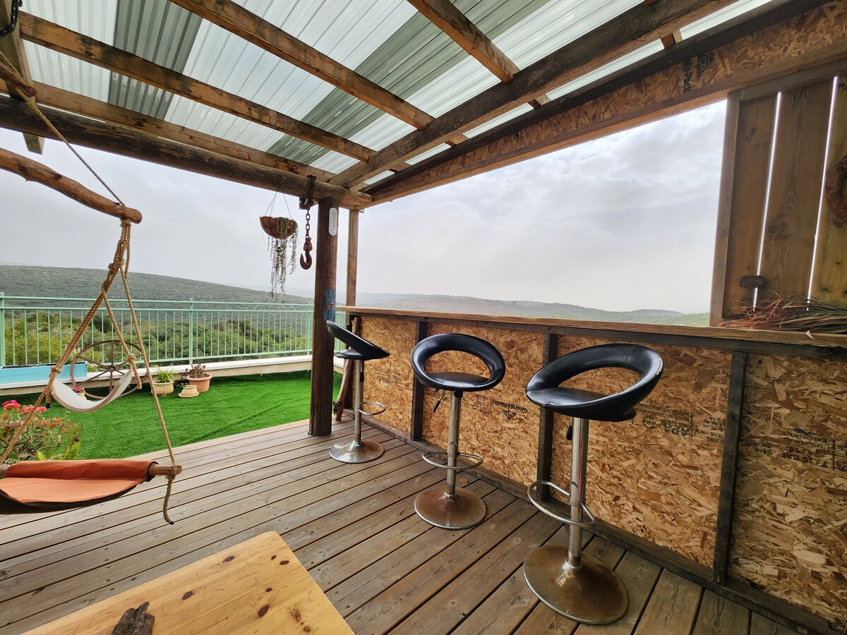 Una cabaña mágica en un paisaje galileo, equipada con todo, con vistas al bosque con un jardín al aire libre y una vista a la montaña Un agradable baño doble al aire libre Área de estar al aire libre, mesa de fuego Televisión con una variedad de canales wifi Aire acondicionado en el dormitorio y en la sala de estar Cocina pequeña totalmente equipada Hierbas en el jardín para tomar el té Cafetera Nespresso sábanas y toallas, Sistema de agua caliente Opción de deliciosos desayunos dobles