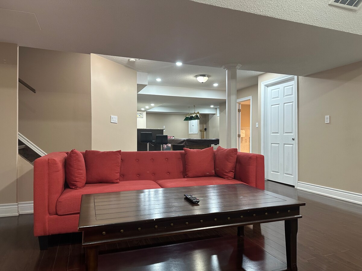 ¡Suite privada en el sótano de 1 dormitorio ideal para🌟 familias en Ajax! 🌟 Esta espaciosa unidad es perfecta para familias pequeñas, parejas o viajeros solos, ofreciendo comodidad y conveniencia en una ubicación céntrica. Aspectos 🛋️ clave destacados: 🛒 A poca distancia a pie de tiendas de comestibles y de Shoppers Drug Mart. A 🎰 10 minutos del casino Pickering y a 12 minutos de Thermae Spa Village. A 🎿 20 minutos de la estación de esquí Lakeridge y a 10 minutos del lago Ontario. 🚆 Fácil acceso al centro de Toronto a través de Go Train. A ✈️ 40 minutos en coche del aeropuerto de Toronto.