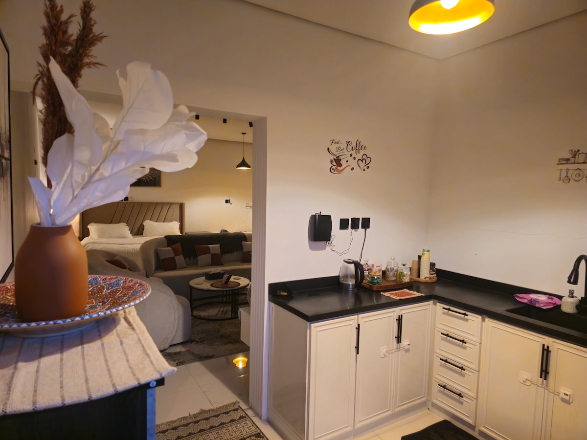 استمتع بإقامة راقية في ستديو فاخر بمدخل خاص بالكامل، صُمم بذوق أنيق ليمنحك الخصوصية والراحة، مع جلسة خارجية خاصة تضيف أجواء هادئة ومميزة. 📍 موقع حيوي بالقرب من أفضل المطاعم والكافيهات والخدمات. ✨ مميزات المكان: • مدخل خاص لخصوصية تامة • دخول ذاتي سهل ومرن • موقف خاص عند الباب • جلسة خارجية أنيقة • تصميم عصري بأجواء دافئة • نظافة بمعايير فندقية • مستلزمات استحمام فاخرة • قهوة، شاي، ومياه ضيافة 🌿 المكان مثالي للأفراد والأزواج الباحثين عن الهدوء والفخامة في آنٍ واحد.