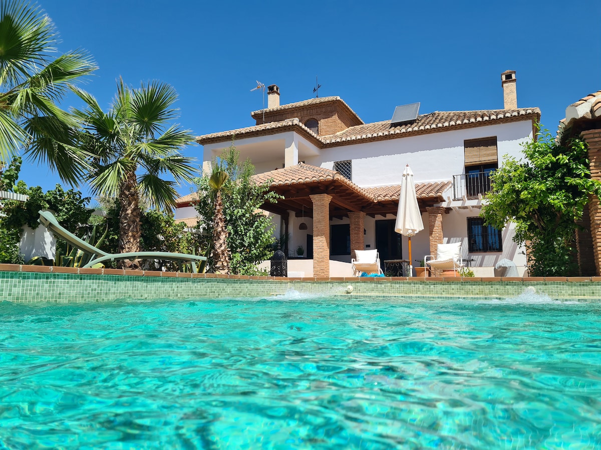 La Casilla, una casa encantadora, muy luminosa y arbolada con espléndidas vistas a la ciudad de Granada. Patios y gran piscina. Ideal para vacaciones o hacer turismo deportivo, cultural o de bienestar. Se encuentra enclavada en la falda de Sierra Nevada y a solo 10 minutos del centro de Granada y del Generalife y La Alhambra. Tiene todos los servicios necesarios a un paso: Centros de Salud, Bancos, Comercios, Gimnasio... Parada de bus a 100 metros, conexiones con todos los puntos de la ciudad.