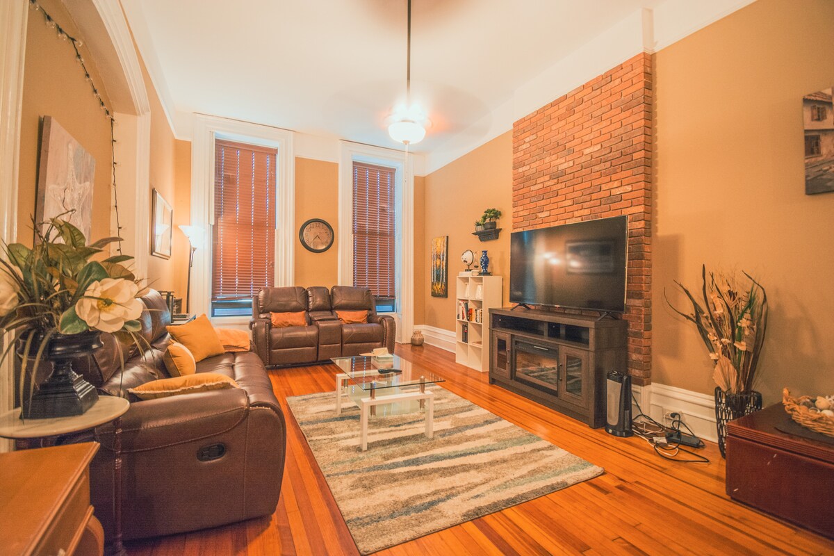Este dormitorio de un dormitorio en el segundo piso en un histórico Brownstone de 1800 se encuentra enfrente del parque Washington. Hermosa carpintería en todas partes con todas las comodidades de un hogar. Gran zona donde puedes caminar o correr en el parque o simplemente disfrutar de una taza de café al aire libre. Selección de restaurantes, tiendas y comercios en la calle Lark. Cine, hospitales y centros comerciales, todo muy cerca. Estamos situados en State Street en Albany, en una zona residencial atractiva con fácil servicio de Uber o Lyft disponible. ((¡NO SE PERMITEN FIESTAS!)