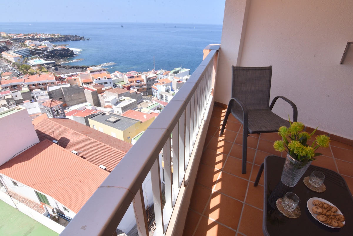 Reformado y elegante apartamento con vistas al mar. Acogedor y romántico. Dotado con todas las comodidades; Equipo de música con USB y Bluetooth, Televisión de 43", NETFLIX, Disney+ y Satélite. Terraza privada con bonito porche perfecto para disfrutar de una velada a la luz de las velas, también pequeño y coqueto jardín también privado. Piscina comunitaria a tan solo 10 pasos, con preciosas vistas al mar y al Puerto de la Cruz. GARANTIZAMOS LIMPIEZA, HIGIENIZACIÓN Y CONFORT.