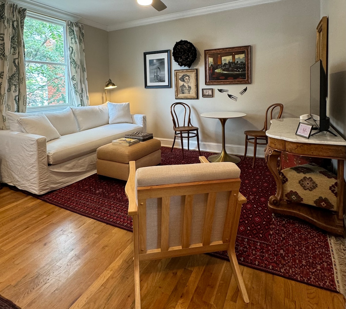 Sofisticado apartamento en planta baja con techos de 12 pies y entrada privada al jardín. Casi 700 pies cuadrados: salón comedor, cocina pequeña, dormitorio, vestidor, ducha a ras de suelo. Decorado con antigüedades y comodidades modernas. Colchón Saatva de lujo y sábanas Garnier Thebaut. Delicias para el desayuno, además de aperitivos, café, etc. A dos manzanas de restaurantes/tiendas/supermercados/etc. Perfecto para familias visitantes, turistas y viajeros de negocios en WDC y Alejandría. A 3,3 millas del Aeropuerto Nacional Reagan. Operado y mantenido personalmente. Sin cámaras.