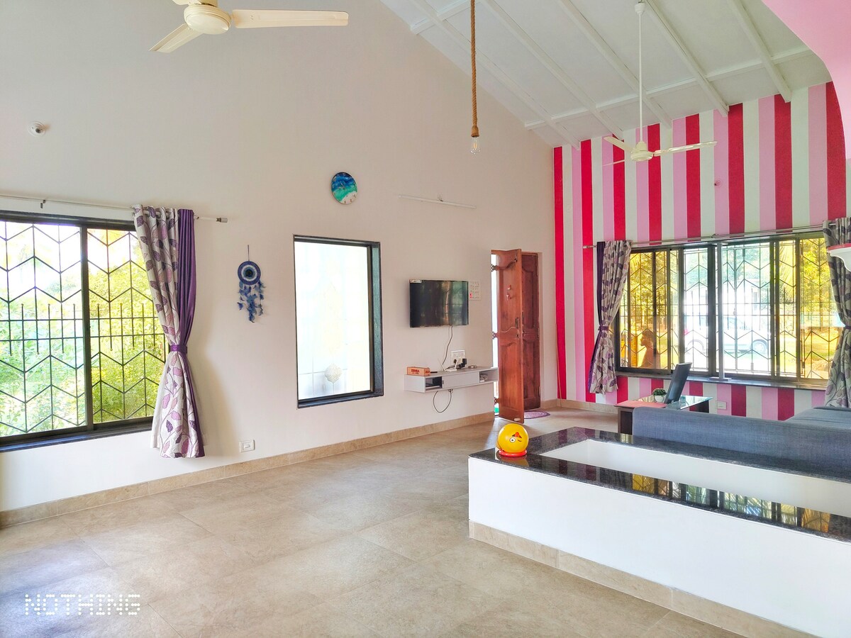 Ubicada en las serenas arenas de la playa de Nandgao, esta casa es donde la belleza de la naturaleza se encuentra con el encanto intemporal. Con hamacas que se balancean bajo las palmeras, un césped para el té, una terraza para puestas de sol y un cenador para las celebraciones, es tu escapada perfecta junto a la playa, con entretenimiento lleno de nostalgia y diversión infinita. Una hermosa casa de 4 dormitorios con comedor, una mesa de billar y una amplia sala de estar con lujosos asientos, un televisor y una colección seleccionada de libros que te invitan a relajarte.