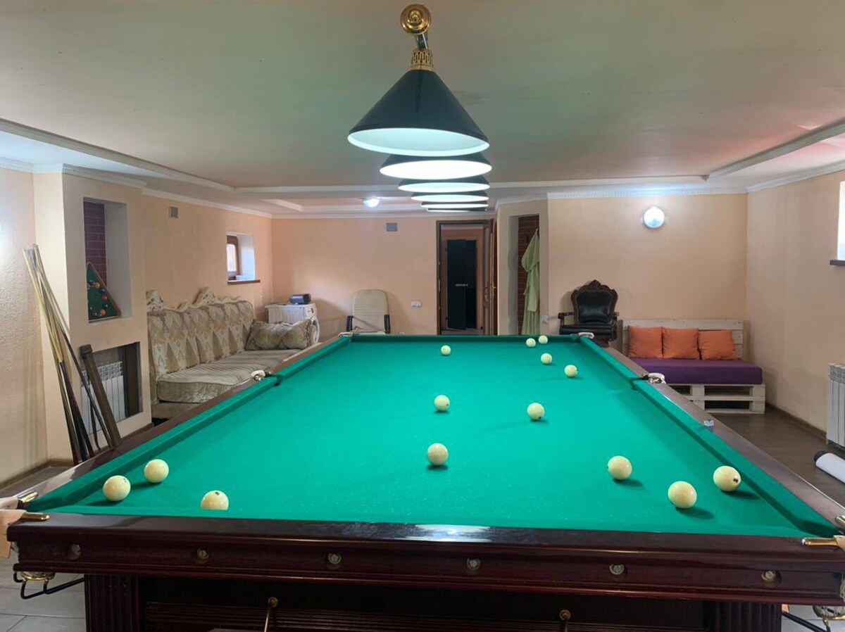 Casa grande, nueva, hermosa y luminosa, ubicada en una zona pintoresca cerca de las montañas de Almaty. Hay clubes ecuestres, centros comerciales, parques y cafeterías cerca. La casa tiene 6 dormitorios, 4 baños, una mesa de tenis, una sauna y 2 cocinas completas. Internet de fibra óptica, aire acondicionado, generador. Estaremos esperando a nuestros huéspedes.
