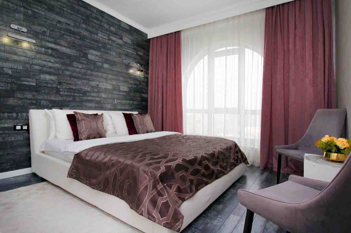 Diviértete en nuestro acogedor y elegante alojamiento. Estudio moderno y funcional en la ciudad de Almaty para 2-4 personas. Se admiten bebés y niños. El alojamiento entero recién reformado tiene todo lo necesario para que tu estancia sea cómoda. El apartamento tiene cocina totalmente equipada, wifi y todas las comodidades necesarias. El apartamento está situado junto al gran centro comercial con una gran variedad de restaurantes, cafeterías y un supermercado. La calle principal City Walking está a 10 minutos a pie.