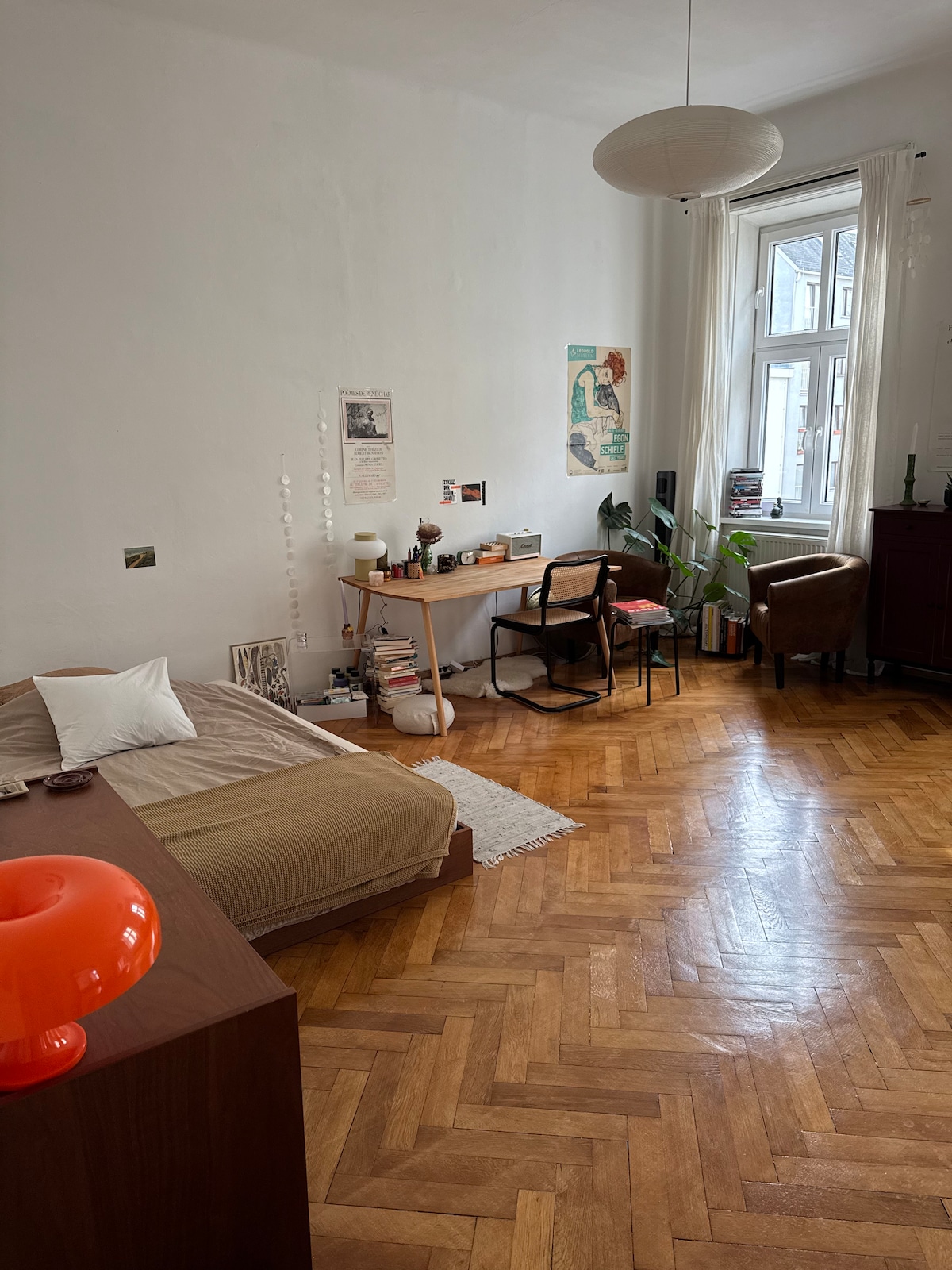 Este apartamento se encuentra en una de las mejores y más modernas zonas de Viena (Servitenviertel) y representa un típico apartamento vienés en un Palais (por ejemplo, techos espaciosos, altos y estucados, interiores elegantes y modernos, lámparas de araña de cristal originales, balcón, piano). Todas las habitaciones están decoradas con mucho estilo y detalle, ya que los propietarios del apartamento son diseñadores de interiores. El apartamento también ha aparecido en Andrew Martins Design Review, los Óscar del diseño de interiores.