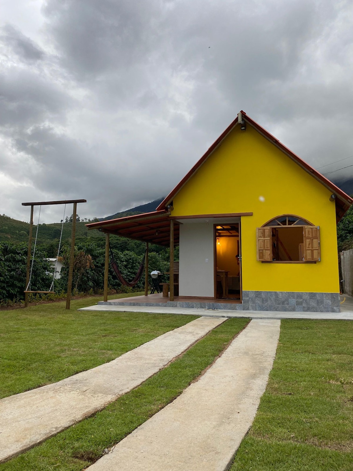 Encantador Chalet exclusivo, ubicado en Fazenda Ninho da Águia, campeón en cafés especiales. Nuestra finca está abierta a los visitantes, donde tenemos un tour que cuenta la historia y el proceso del café, desde el pie hasta la taza. En 55 hectáreas divididas en bosques preservados, manantiales y plantaciones intercaladas, en una gestión agroecológica, se forman los jardines sostenibles que dan origen a nuestros granos. Estamos junto a la entrada del Parque Nacional Caparaó, en una de las laderas del Pico da Bandeira.