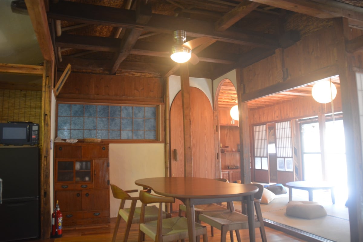 A unos 30 minutos en coche del aeropuerto de Amami, se encuentra una casa de madera en un campo de mikan frente al Pacífico. Una experiencia de vida diferente a la de un hotel. Despertar con el sonido de las olas y el canto de los pájaros, sentir la energía del sol de la mañana en la piel y disfrutar de un espacio privado donde se pueda estar en contacto con la naturaleza. Es una estancia llena de esos sentimientos. Desde el dormitorio de 6 tatamis y la sala de estar de 13 tatamis se puede disfrutar de unas vistas panorámicas del cielo y el mar de Amami, un paisaje de lo más lujoso. La playa se encuentra a pocos minutos a pie, y los paseos matutinos por la costa son excepcionales. Equipado con todas las comodidades. La cocina está equipada con utensilios y vajilla. En el jardín con césped frente al mar, también puede disfrutar de una barbacoa (de pago). Los niños también son bienvenidos. Para ir de compras, a unos 5-10 minutos en coche se encuentra el Super Big Two (donde encontrará una amplia variedad de recuerdos de Amami). el mercado de MASAN, la farmacia DRUGS STORE MOLY y un supermercado. También hay restaurantes, como Joyfull, Tetsu-chan, Torihide Hisakura y elegantes restaurantes italianos y asiáticos que utilizan verduras locales. Este establecimiento no cuenta con la presencia de anfitriones para que los huéspedes puedan disfrutar de su privacidad. Esperamos que disfrute de su estancia como si estuviera en su propia casa.