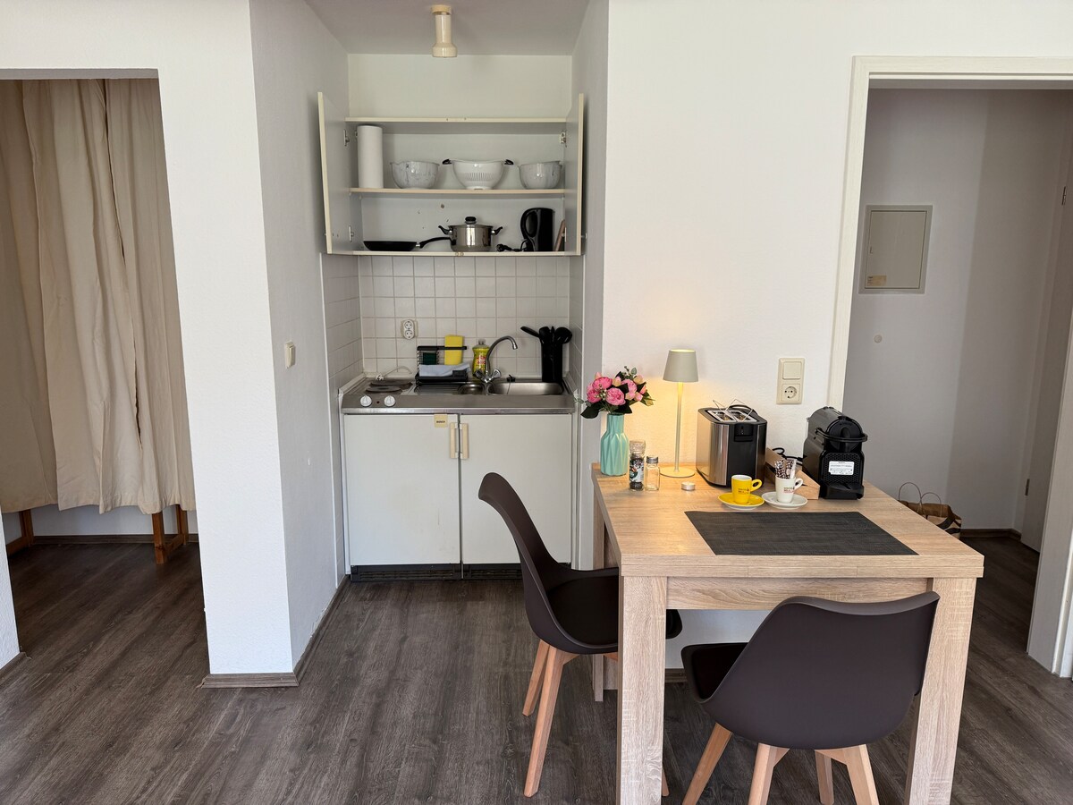 Apartamento amueblado con estilo en una casa adosada (nueva construcción) con el siguiente equipamiento: - Cama de 140 x 200 cm - baño privado - persiana eléctrica - Cafetera (incluye café) - Microondas combinado con convección - Nevera - Televisor - Wifi - Secador de pelo para invitados - Calefacción por suelo radiante - Control de ventilación central - Puerta insonorizada independiente con timbre/abrepuertas - Cómoda - Mesa de comedor - Vajilla - Aparcamiento gratuito - Posibilidad de carga de vehículos eléctricos - Equipamiento inicial incl. (ropa de cama, toallas)