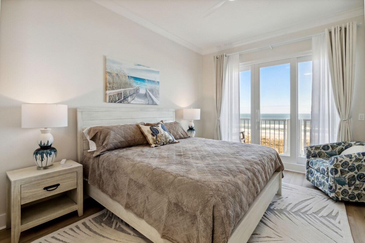«Esta es mi sección favorita de la playa, rara vez está tan concurrida como las otras partes de la isla» - Anne Con vistas a la hermosa playa de Amelia Island en múltiples direcciones orientadas al amanecer desde el último piso, este refugio de lujo recién remodelado es una diversión única. Escucha las olas desde ambas suites con cama tamaño king. A unos pasos de la arena. A minutos del centro histórico empedrado. «No es la casa de playa de tu abuela... es un poco de lujo junto al mar con vistas increíbles... acceso privado a la playa y una gran piscina» - C.H.