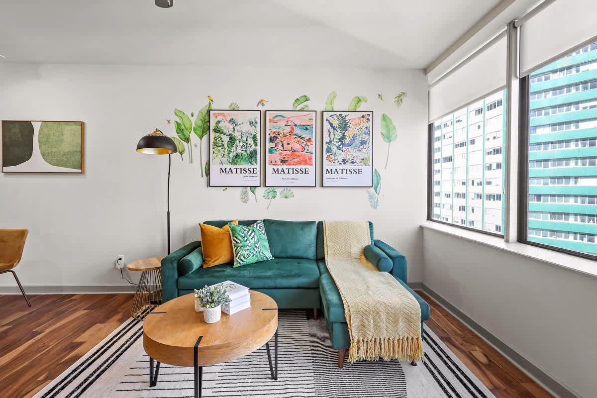 Saluda a tu elegante apartamento de un dormitorio, tu hogar lejos de casa. Inmediatamente te sentirás como en casa en tu unidad, con un televisor inteligente Samsung, Sonos, utensilios de cocina necesarios y ropa de cama deliciosamente cómoda. Esta unidad está equipada con todo lo necesario para que te mudes a tu unidad y te sientas como en casa de inmediato. Tenemos cómoda ropa de cama de calidad hotelera, muebles elegantes y ventanas gigantes que dejan entrar todo el sol que puedas pedir.