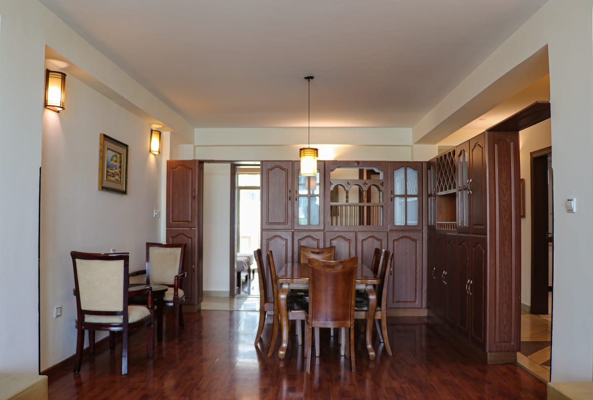 Lujoso apartamento en la zona de Hayahulet de Addis Abeba, con 2 dormitorios, 2 baños completos, cocina completa, bar, sala de estar con zona de trabajo, aparcamiento dedicado, wifi y generador de respaldo. Perfecto para viajeros de negocios o estancias prolongadas. A solo 10 minutos del aeropuerto y a 5 minutos de la estación de tren.
