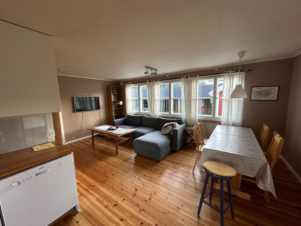 Acogedor apartamento con entrada propia. Solución abierta con sala de estar y cocina. Cocina bien equipada con fogones, nevera, lavavajillas y microondas. El baño está completamente renovado con lavadora y lavavajillas. En la sala de estar hay un sofá cama, y en la tumbona encontrarás un colchón superior que cabe. En el dormitorio hay una cama doble. Edredones, almohadas, ropa de cama y toallas para 4 personas.
