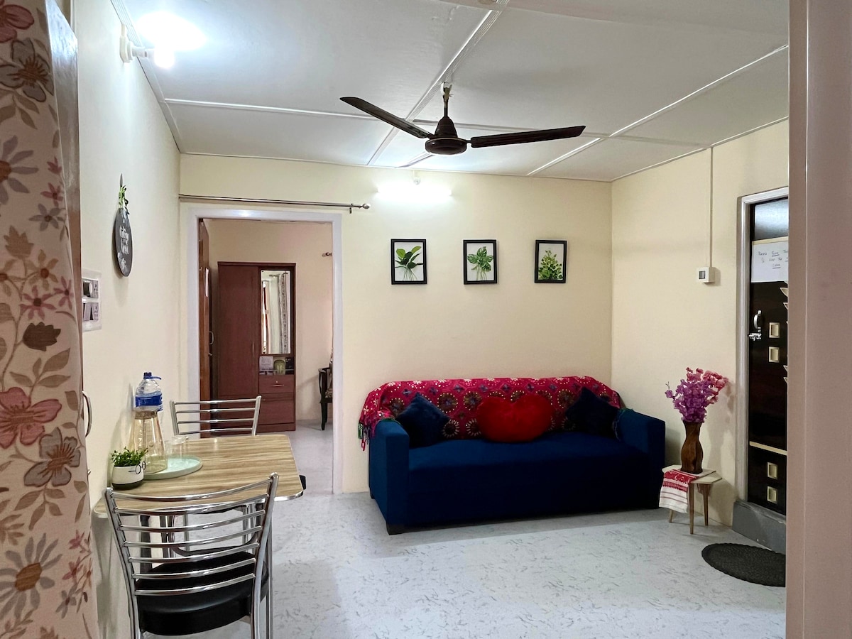 Este 1bhk consta de un dormitorio con un baño adjunto, un comedor y una cocina totalmente funcional. La habitación tiene aire acondicionado y el baño tiene géiser. Está en la planta baja con entrada independiente. El estacionamiento para un auto/bicicleta está disponible. Wifi disponible. Espacio queer y apto para parejas para huéspedes mayores de 18 años.