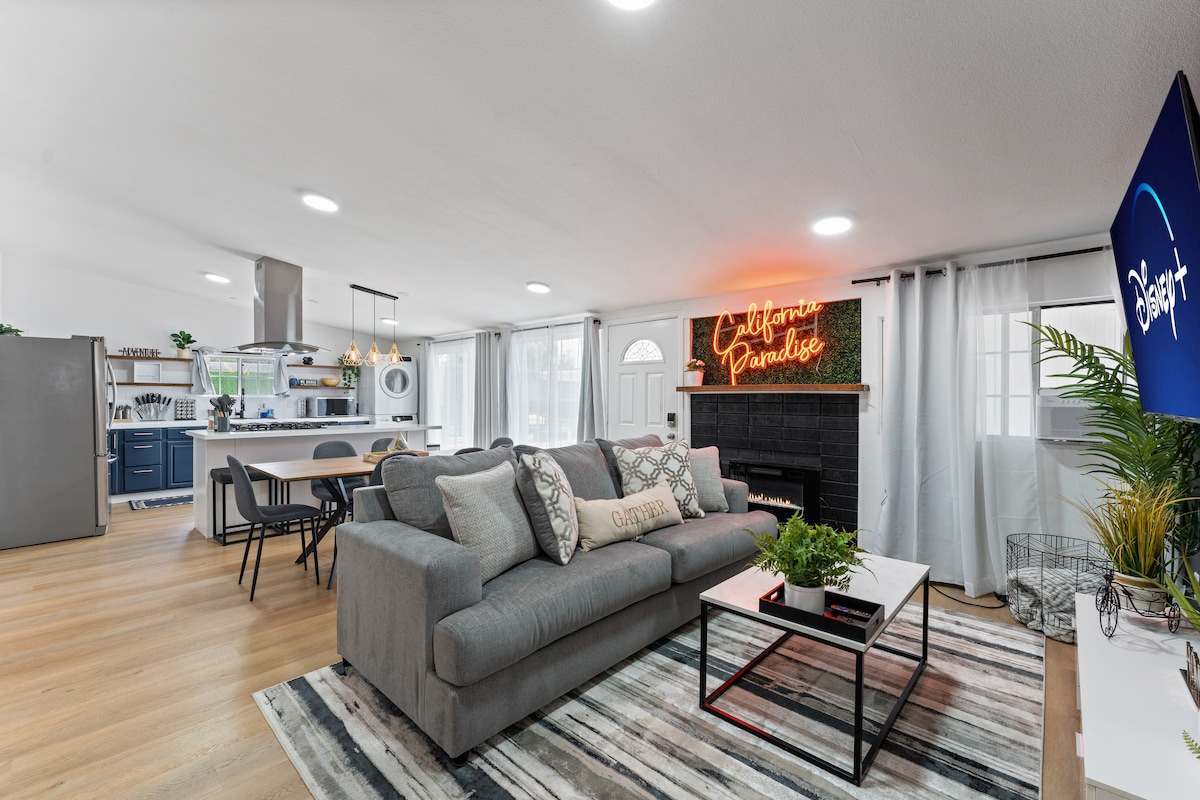 Este alojamiento único tiene personalidad propia. Estás a 6 minutos de la hermosa playa de Huntington y a 24 minutos del parque Disneyland. Cada habitación tiene su propio sistema de sonido y puedes conectar tu teléfono a ellos fácilmente. Toda la casa ha sido remodelada recientemente con un aspecto moderno y tiene 4 colchones tamaño king de buena calidad perfectos para dormir mejor. Puedes ir caminando a decenas de restaurantes y al mercado desde tu villa. También puedes añadir otra villa independiente de 2 dormitorios a tu reserva.