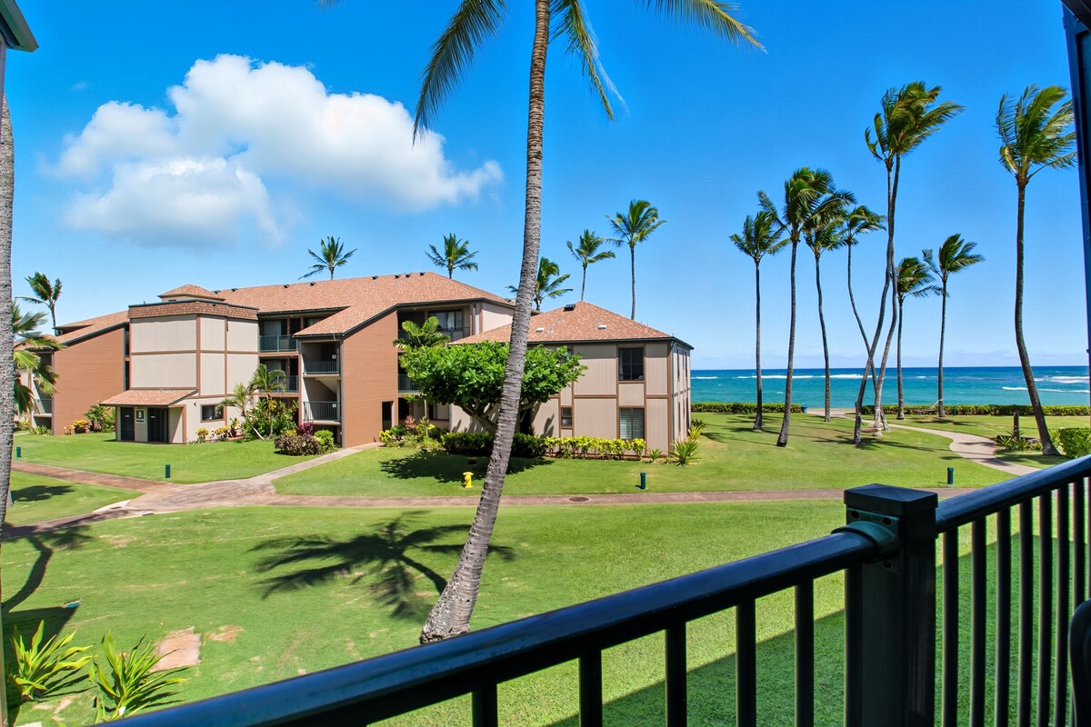 **¡Nuestro alojamiento ha sido completamente renovado a partir de octubre de 2021!*** ¡Disfruta de la Royal Coconut Coast en un apartamento de 180 grados frente al mar! Ubicado en el lado del viento alisio de la Isla Jardín, relajarás tus días bajo el sol tropical y la suave brisa. Sumérgete en hermosos amaneceres en el lanai mientras tomas café y disfruta del desayuno. Con vistas a la playa de arena de una milla de largo, el sendero Ke Ala Hele Makalae y el Océano Pacífico, vivir Aloha nunca ha sido tan fácil.