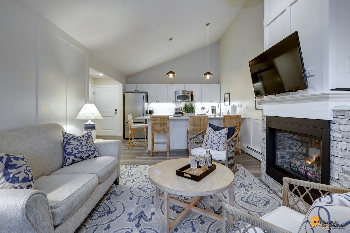 Esta casa de estilo chalet recientemente remodelada cuenta con techos blancos, paredes de cedro y vigas abiertas. Los grandes ventanales revelan la cordillera de Chugach. Sus conceptos de piso abierto tienen la sensación de una cabaña de montaña con las modernas mejoras de una casa adosada. El loft del dormitorio cuenta con un hermoso diseño arquitectónico y comodidad. Este lugar es una escapada maravillosa para una pareja o una familia de hasta 6 personas. El vecino Kincaid State Park, con vistas al mar y un gran sistema de senderos, ofrece una variedad de actividades