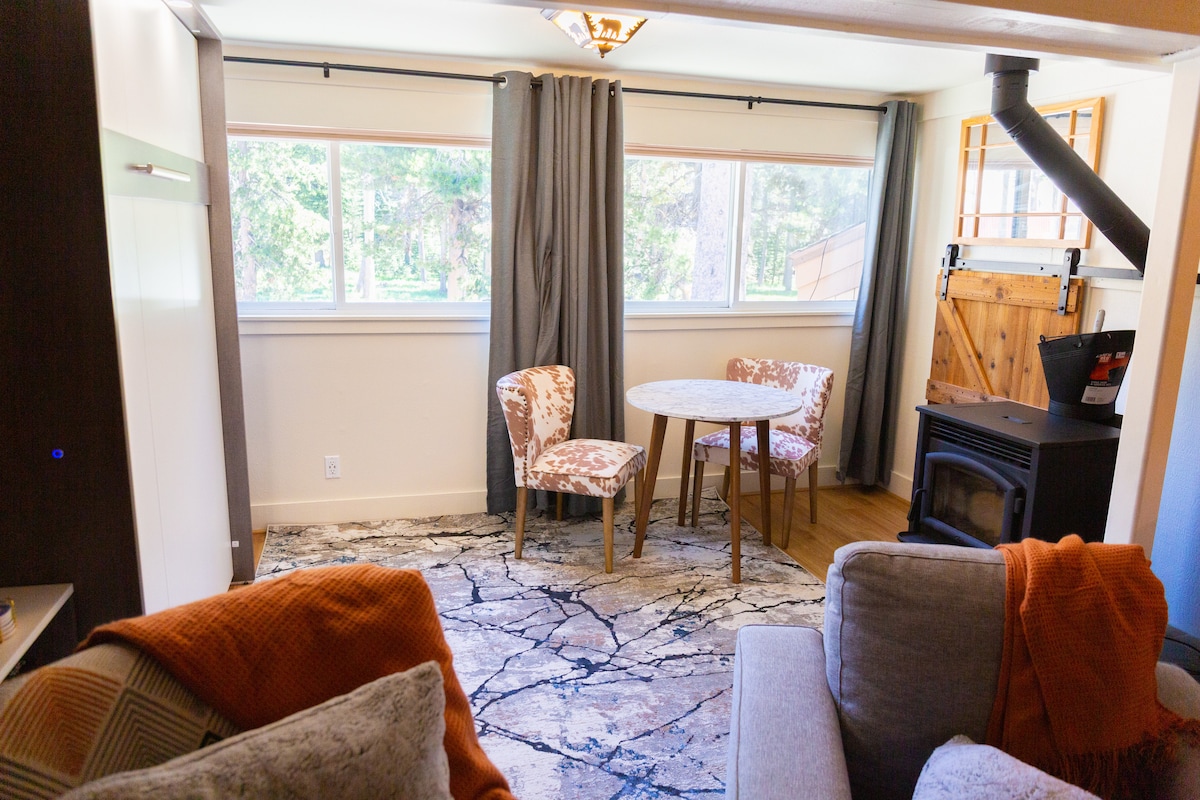 Uno de los apartamentos más cercanos al pueblo con un paseo fácil hasta el comedor, bares, música, tiendas y piscina del pueblo, así como el servicio gratuito de traslado de esquí. ¡Calefacción eléctrica moderna, wifi y chimenea! (Trae tu propia madera o compra en la tienda del pueblo) Justo enfrente del legendario festival de música del valle del oso y de muchos otros eventos que se celebran en el estacionamiento del centro comunitario. ¡Los senderos para senderismo, ciclismo, esquí y motos de nieve en el Bosque Nacional Stanislaus comienzan justo en el apartamento!
