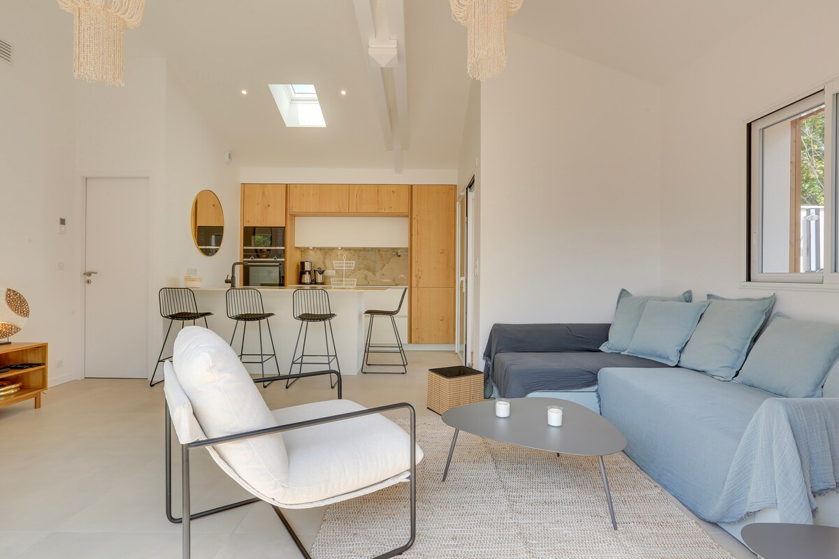 El apartamento de 60 m2 se encuentra en el corazón del pueblo de Seignosse, en la tranquilidad de un callejón sin salida. Todas las comodidades se encuentran en las inmediaciones (panadería, tienda de comestibles, peluquería, etc.). Una vez en el apartamento, le seducirá la luminosidad y la tranquilidad del lugar. El salón da a un estanque privado cuyos colores cambian a lo largo de las horas del día. La terraza protegida de 13 m2 le permitirá disfrutar de este entorno idílico alrededor de una comida, un desayuno... o un aperitivo.