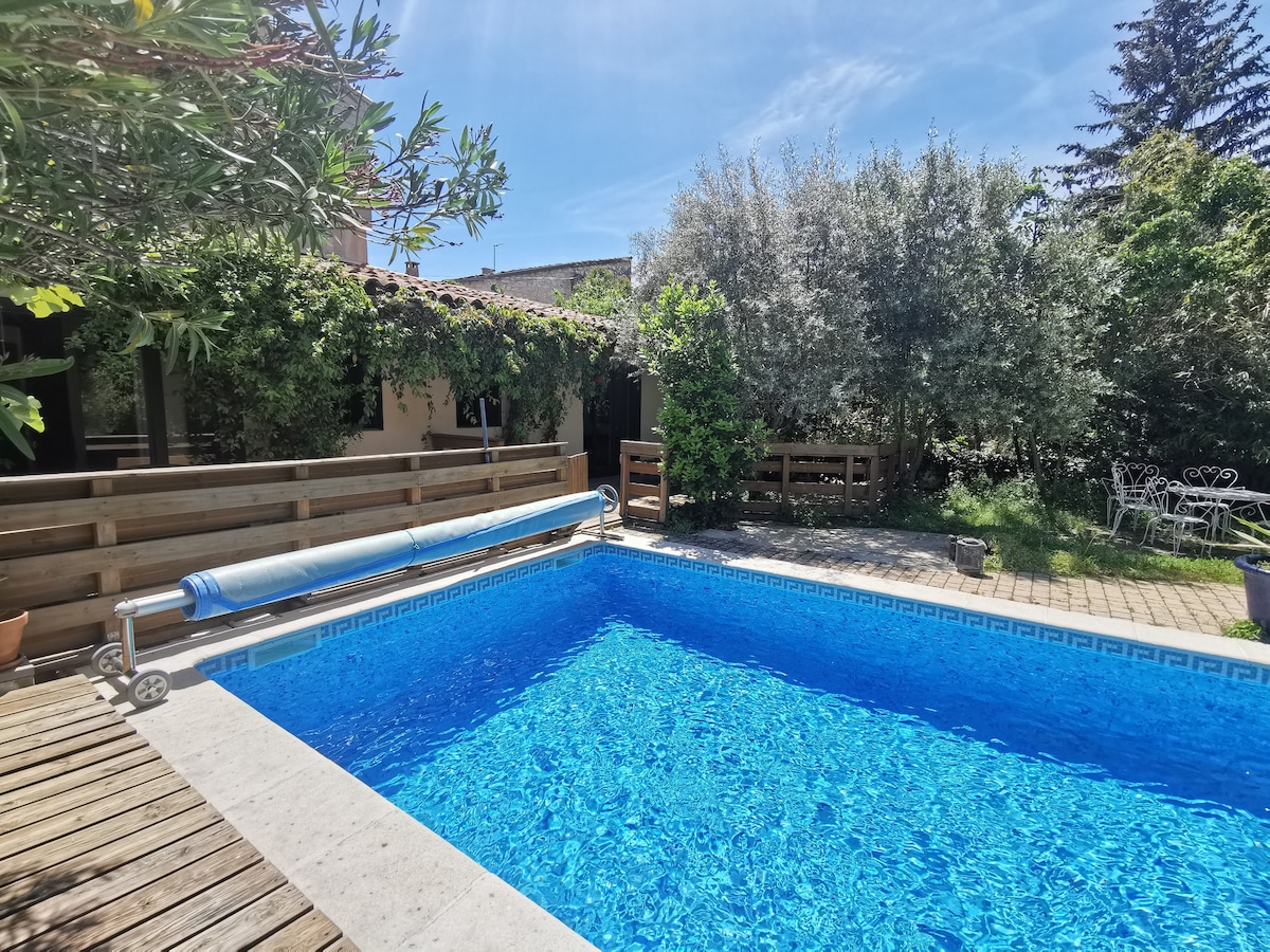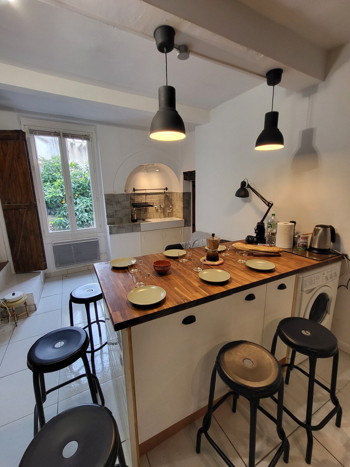 Bienvenido a nuestra casa en la planta baja de 45 m2 y sus grandes ventanales se abren a la gran terraza de madera de 35 m2. Tranquilo, y sin vista, se puede disfrutar pacíficamente de la vista y el acceso a nuestro gran jardín bohemio con nuestra piscina, en el corazón del pueblo, a dos minutos de tiendas, restaurantes y el mercado con productos locales. Estacionamiento privado justo enfrente (callejón sin salida tranquilo). Terraza privada. Acceso a la piscina y jardín de los propietarios.