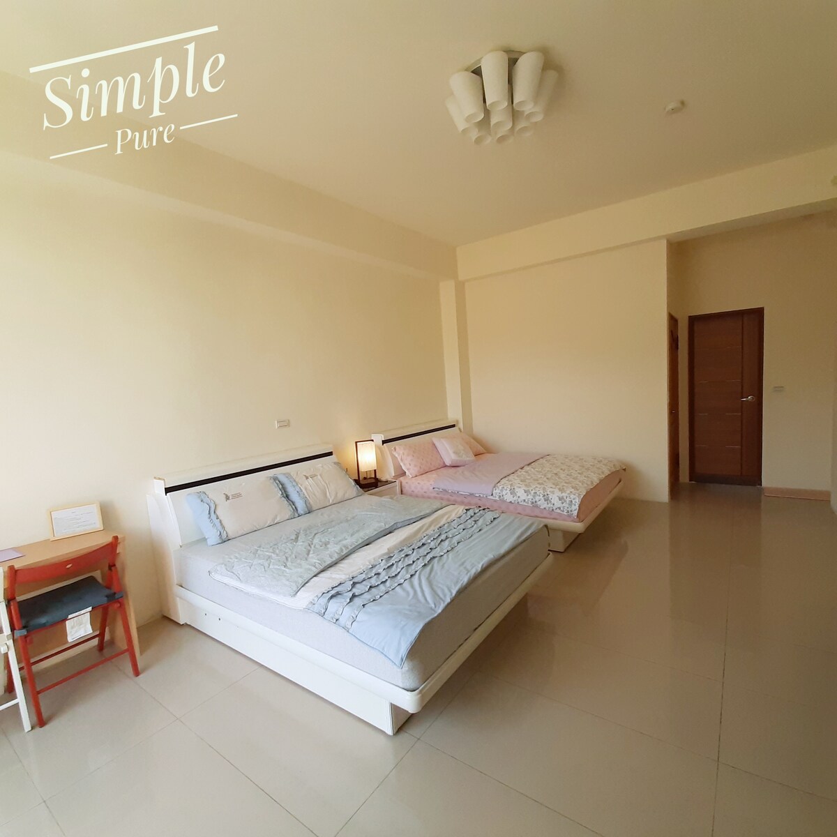 Esta habitación es suite y aceptable para dos personas. Suministramos toallas,champú,secador de pelo,TV. Si lo necesitas , tenemos desayuno hecho a mano 100 NTD por persona.