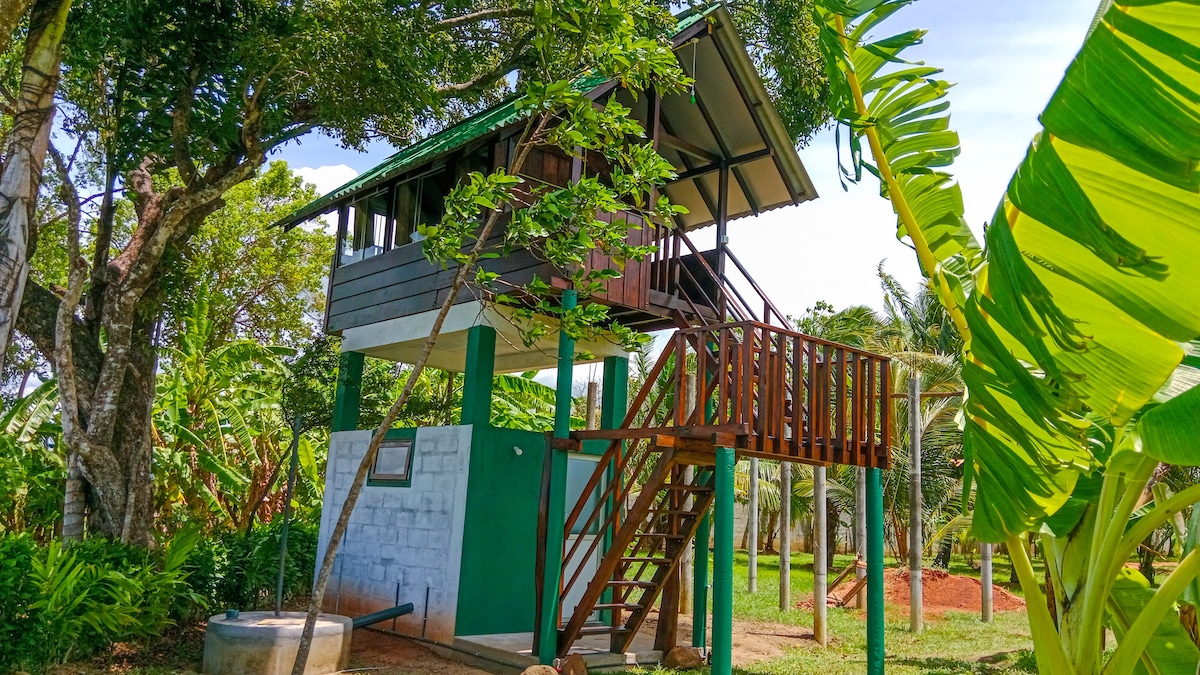 Bienvenido a nuestra hermosa casa del árbol, ubicada en el corazón de Sigiriya, con una increíble vista al lago. Nuestros huéspedes tendrán la oportunidad única de despertarse con los sonidos de la naturaleza y disfrutar de impresionantes vistas al lago desde su balcón privado. Nuestra casa del árbol está diseñada exclusivamente para proporcionar un ambiente sereno y tranquilo, perfecto para aquellos que buscan escapar del ajetreo de la vida cotidiana. La casa del árbol está rodeada de exuberante vegetación, lo que proporciona a los huéspedes tranquilidad y aislamiento.