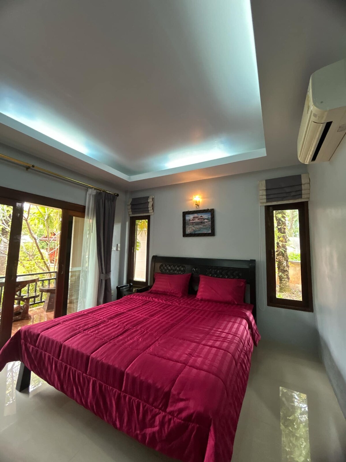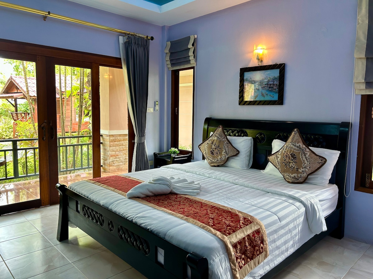 Ofrecemos una moderna casa de estilo bungaló con grandes ventanales sobre un paisaje pintoresco con una piscina natural, palmeras y muchas frutas y vegetación. El lugar es el destino perfecto para aquellos que buscan un lugar para escapar de la vida moderna y aún así tener toda la comodidad del aire acondicionado y wifi, a pocos minutos del centro de la ciudad de Krabi y las playas de Ao Nang.