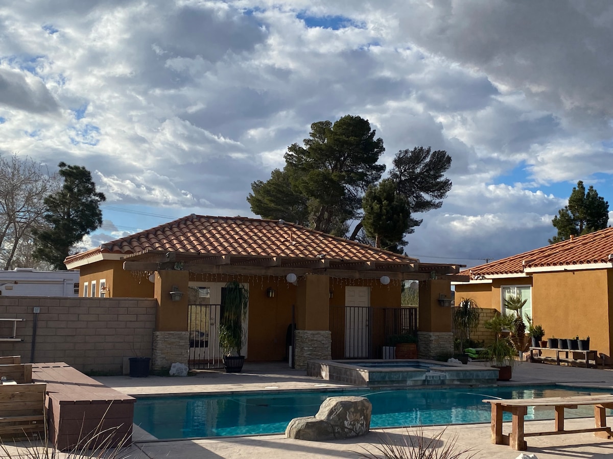 ¡Escápate para trabajar o jugar! --Propiedad acogedora, tranquila y desértica-- Tranquilo. Aparcamiento seguro en la calle. Wifi rápido. Lavadora, secadora. ¡Hermoso por dentro y por fuera! Palmeras, rosas, amaneceres y atardeceres. Vista a la montaña. Piscina. Entrada privada cerrada. Netflix, Amazon Prime ~Asador ~Café~Cocina. A pocos minutos en coche de: centro comercial, autopista 15 y 395. ¡Supermercado, Walmart, Denny's, Starbuck's, más! 3 horas: Las Vegas. Horas a: atracciones de Los Ángeles; Disney. 1,5 horas: Big Bear, 35 minutos: Wrightwood, 35 minutos: Apple Valley. Estancias extendidas.