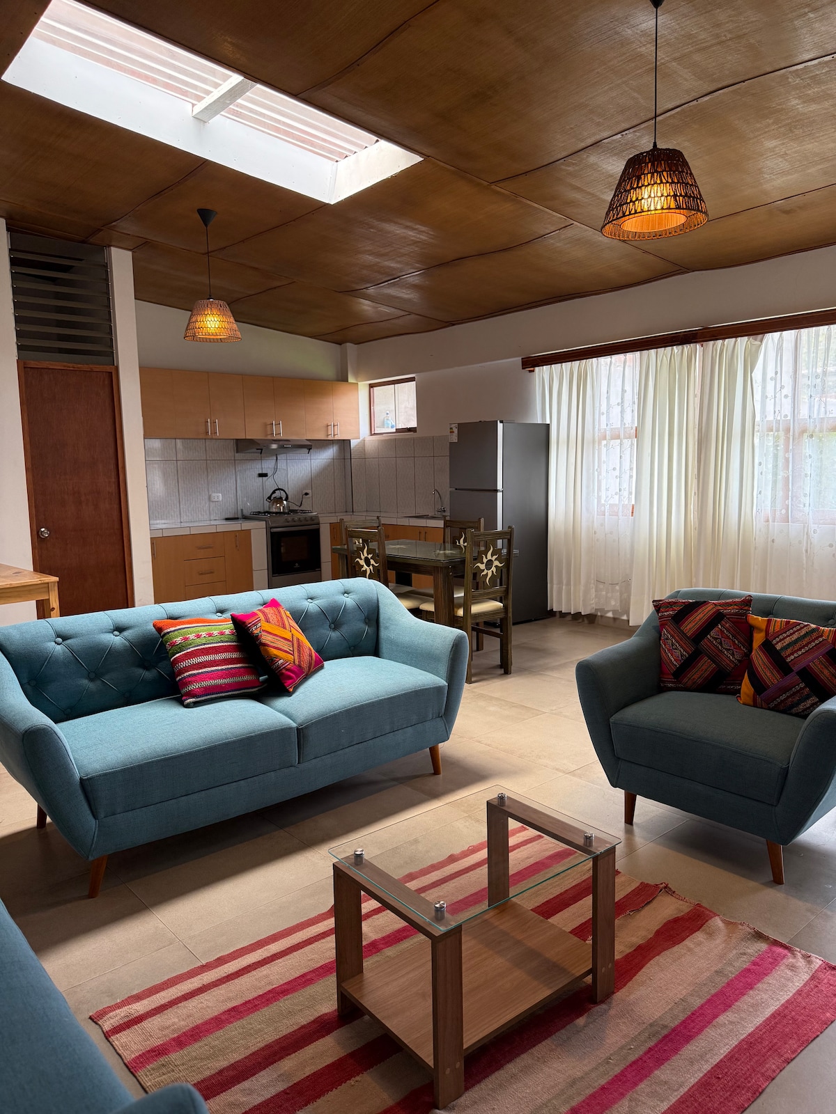 Disfruta tu viaje en nuestra casa de campo en el Valle Sagrado de los Incas perfecta para una escapada tranquila. Esta casa independiente ofrece amplios espacios con hermosas vistas a las montañas, creando un ambiente de paz. Cuenta con habitaciones con baño privado y agua caliente, una cocina completamente equipada y una lavandería. La hermosa piscina, ubicada en el jardín, es ideal para relajarse bajo el sol andino ya sea nadando o simplemente disfrutando del entorno.