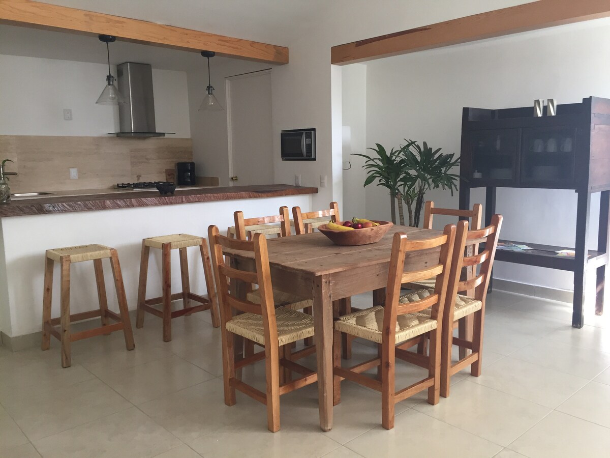 Departamento súper cómodo, impecable, amplios espacios que invitan a la convivencia. Los blancos y colchones de primera, para un excelente descanso después de un día de aventura. 3 RECÁMARAS, 6 - 10 HUÉSPEDES. Rec. A - Cama King Size. (1 KS) Rec. B - 2 camas matrimoniales. (2 full beds) Rec. C - 2 camas matrimoniales. (2 full beds) Cocina equipada, 2 baños, estacionamiento 2 autos medianos. Planta alta. Aire acondicionado. Todo en excelentes condiciones de funcionamiento y limpieza.