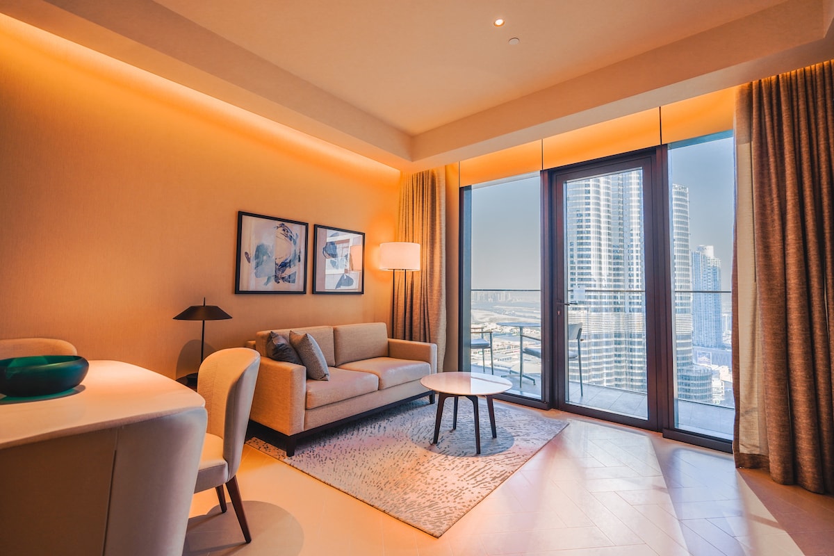 Te damos la bienvenida a nuestra residencia Seraya de 2 dormitorios en Opera Residences, donde la comodidad del hogar se une a la hospitalidad de 5 estrellas. Ubicado en el corazón del centro de Dubái, justo enfrente de la Ópera de Dubái, este elegante apartamento ofrece vistas panorámicas del Burj Khalifa y la Fuente de Dubái. Diseñado con interiores personalizados, cuenta con una amplia sala de estar, una cocina totalmente equipada y ventanales de suelo a techo que muestran el horizonte de Dubái. Una estancia refinada donde el estilo, la comodidad y la ubicación se unen sin esfuerzo.