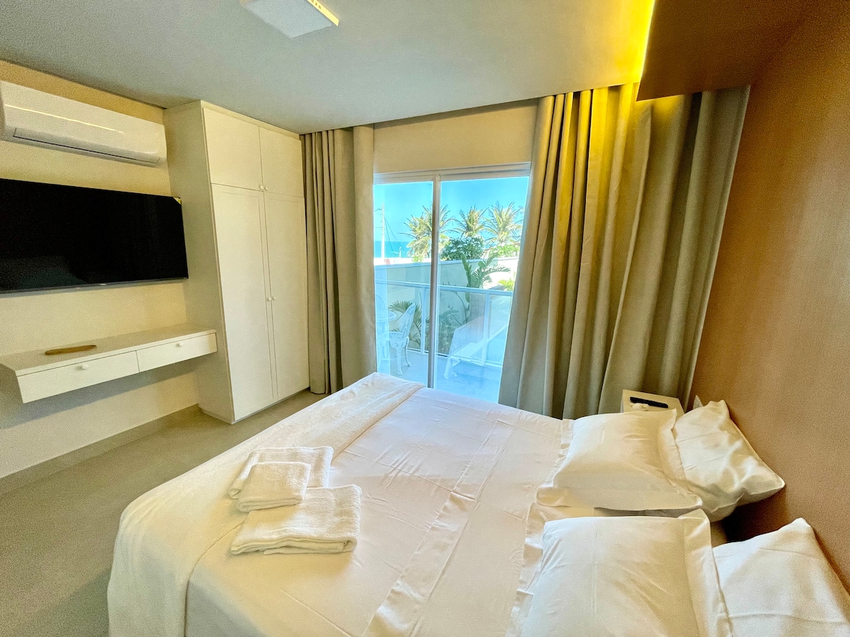 Curta essa experiência tranquila e relaxante, onde cada detalhe foi pensado para trazer conforto e bem estar. Nosso espaço conta com uma cozinha equipada e funcional para tomar café da manhã ou preparar refeições. A suíte é composta por um banheiro amplo e quarto com cama Queen size, rede e vista panorâmica do mar. O destaque é a área externa, com uma varanda de frente para o mar e uma jacuzzi exclusiva para seu uso! Ofereceremos serviço de praia, espreguiçadeira e guarda-sol.